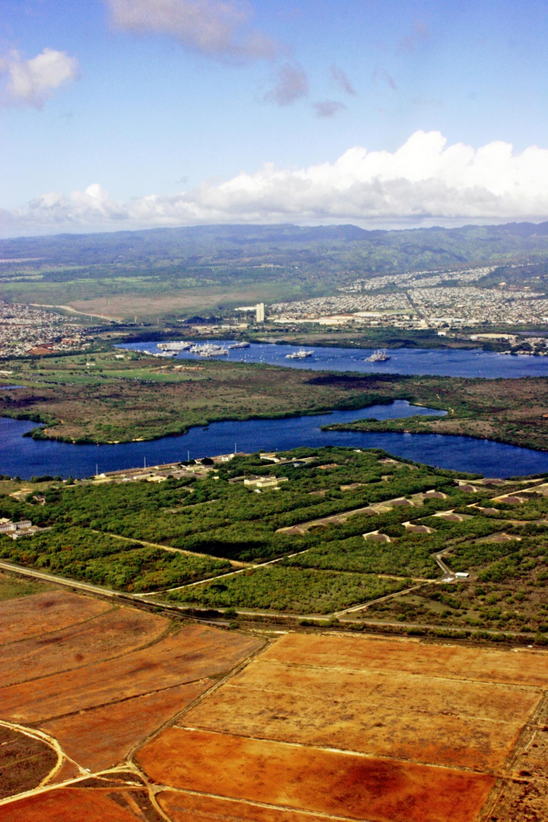 pearl harbor; honolulu; hawaii; mountain; bay; harbor; landscape; air view; perspective; mountains; bays; harbors; landscapes; perspectives