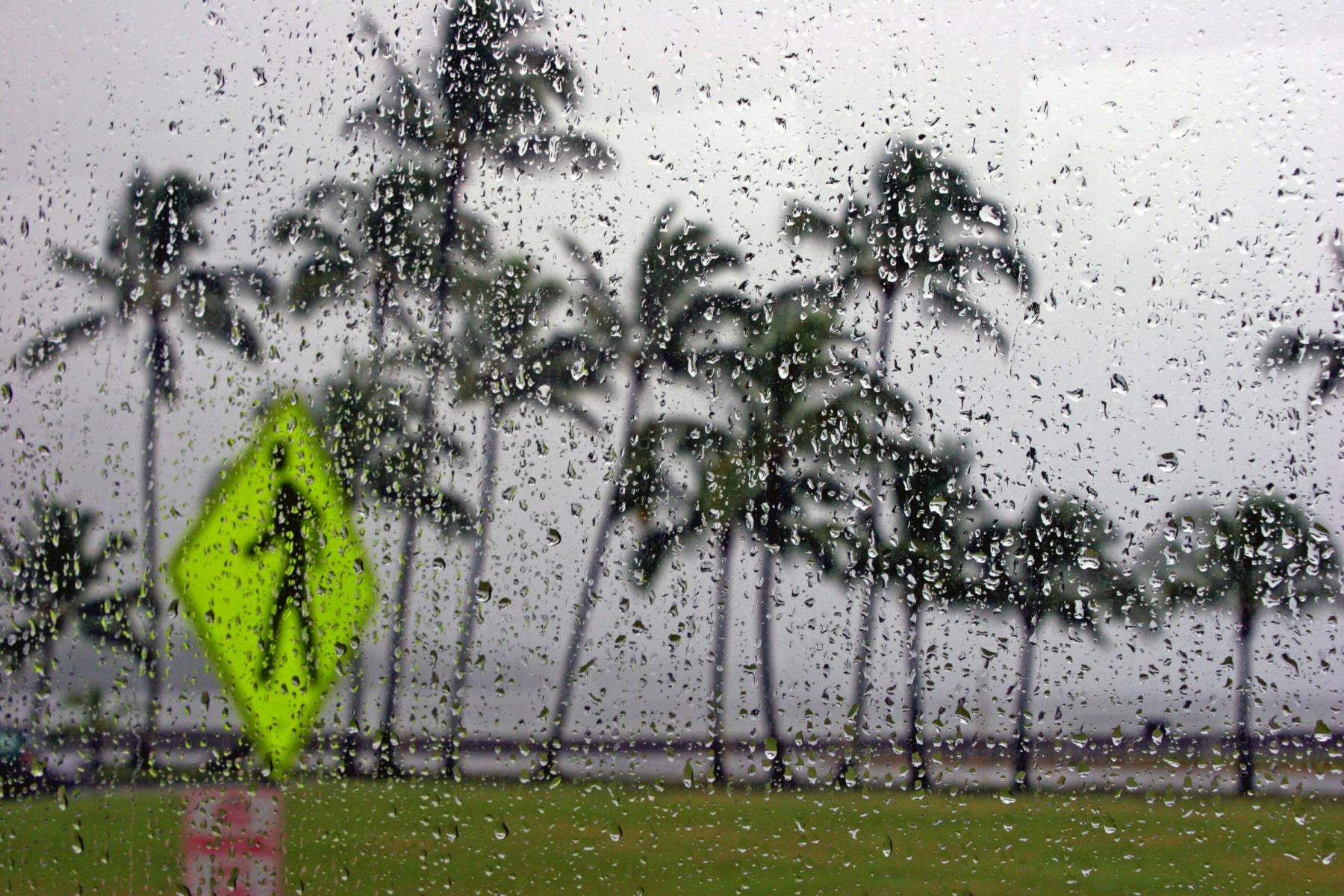 rain; rain-spotted; rainy; rain storm; palm; palm trees; hawaii; palms