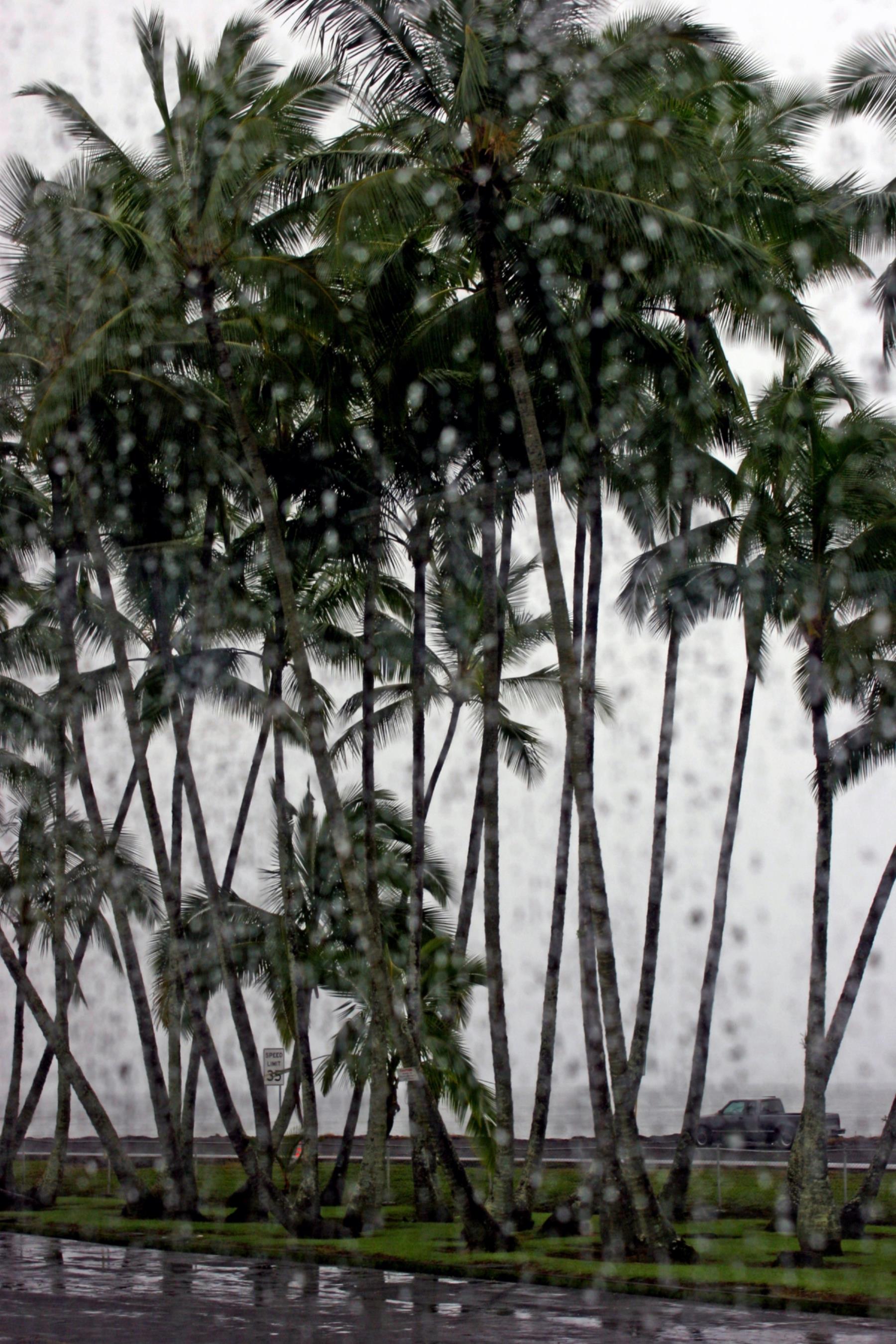 rain; rain-spotted; rainy; rain storm; palm; palm trees; hawaii; palms