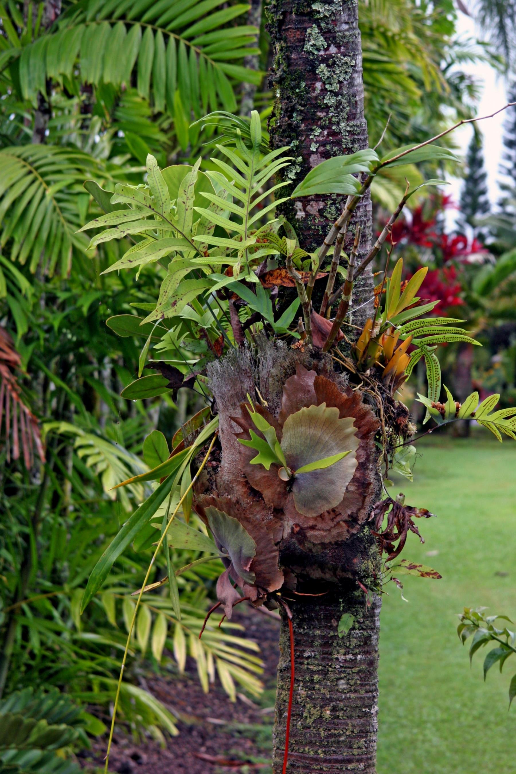 flower; climb; climbs; climbed; climbing; tree; nani mau botanical gardens; island of hawaii; hawaii; flowers; trees