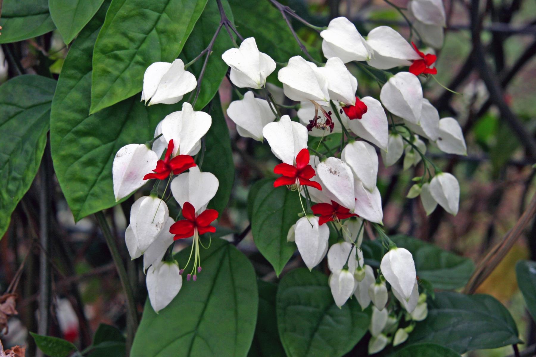 flower; white and red flowers; white; red; nani mau botanical gardens; island of hawaii; hawaii; flowers; whites