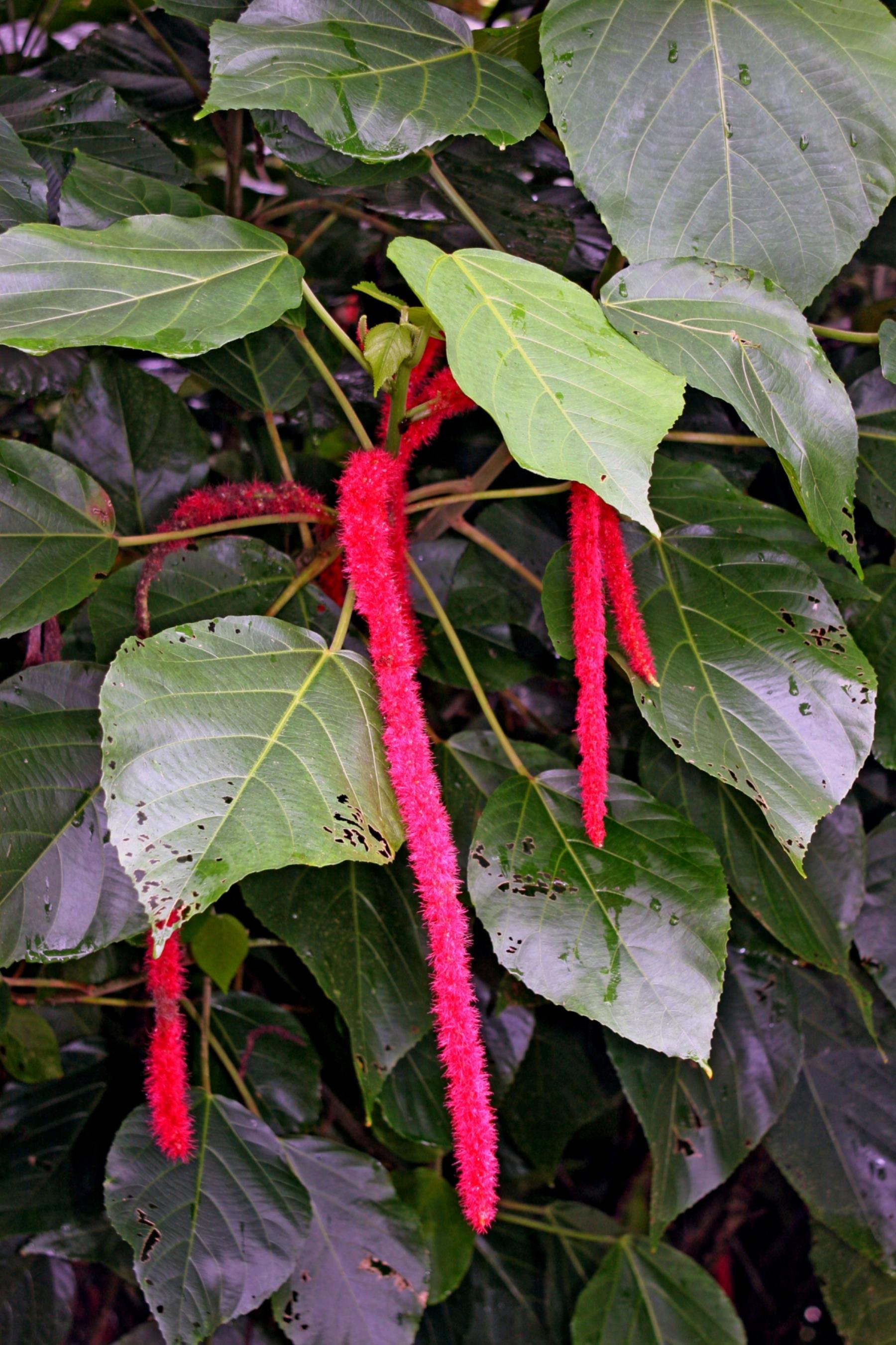 chenille; red flowers; red; flower; nani mau botanical gardens; island of hawaii; hawaii; flowers