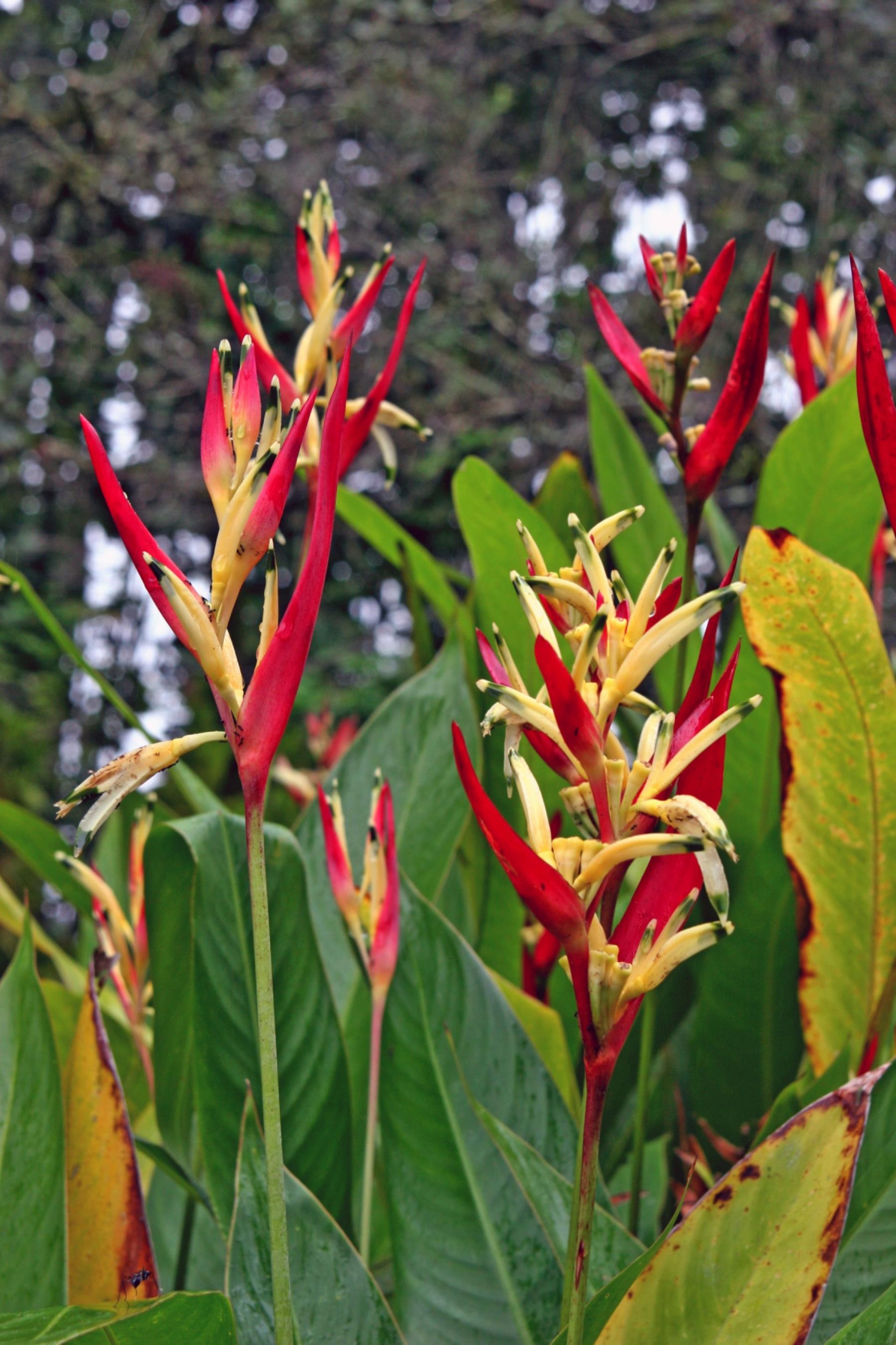sassy; parrot's beak heliconia; heliconia; red and yellow flowers; red; yellow; nani mau botanical gardens; island of hawaii; hawaii; yellows