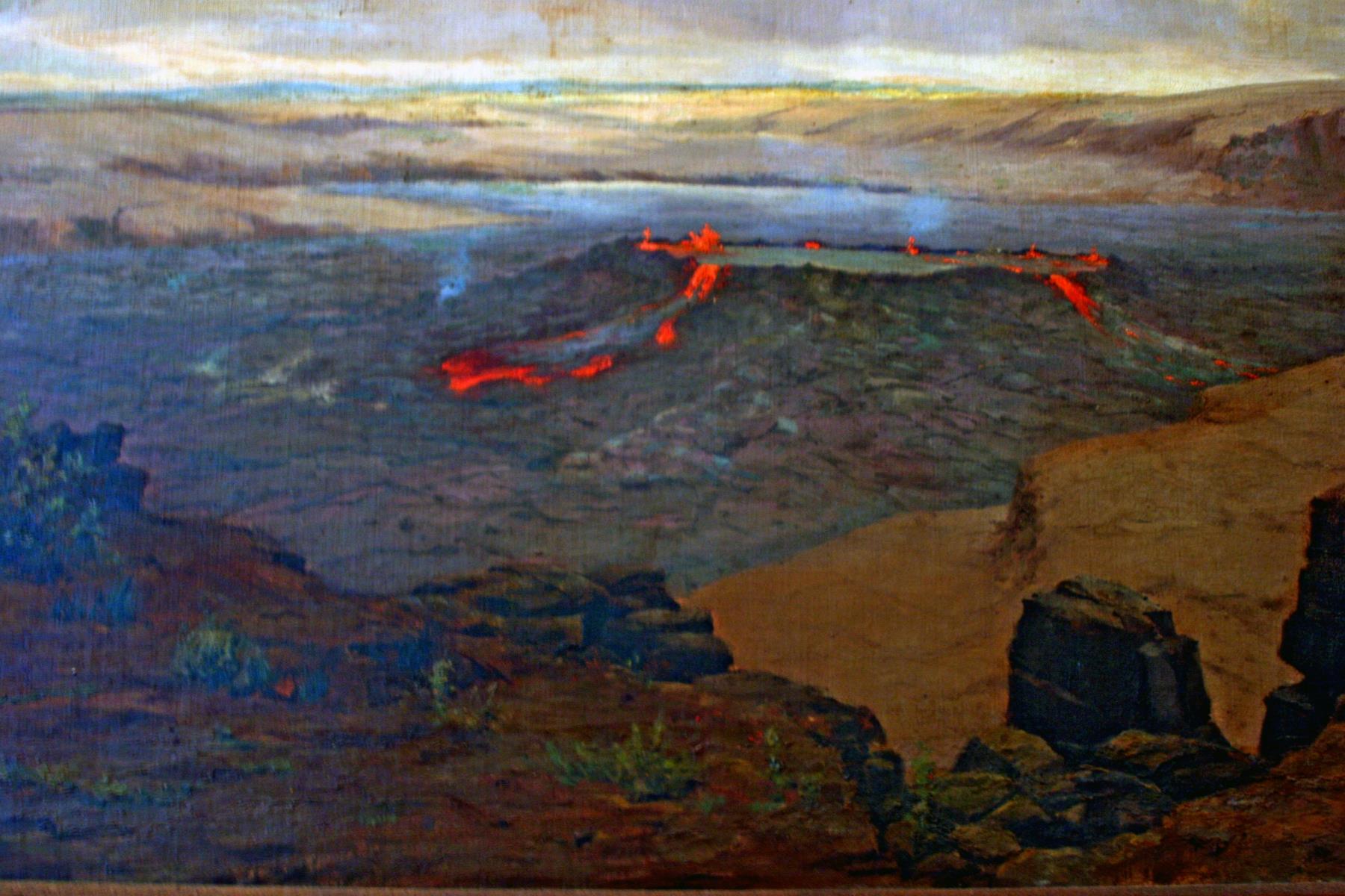 Painting of volcano eruption, Volcano National Park; Island of Hawaii, Hawaii.