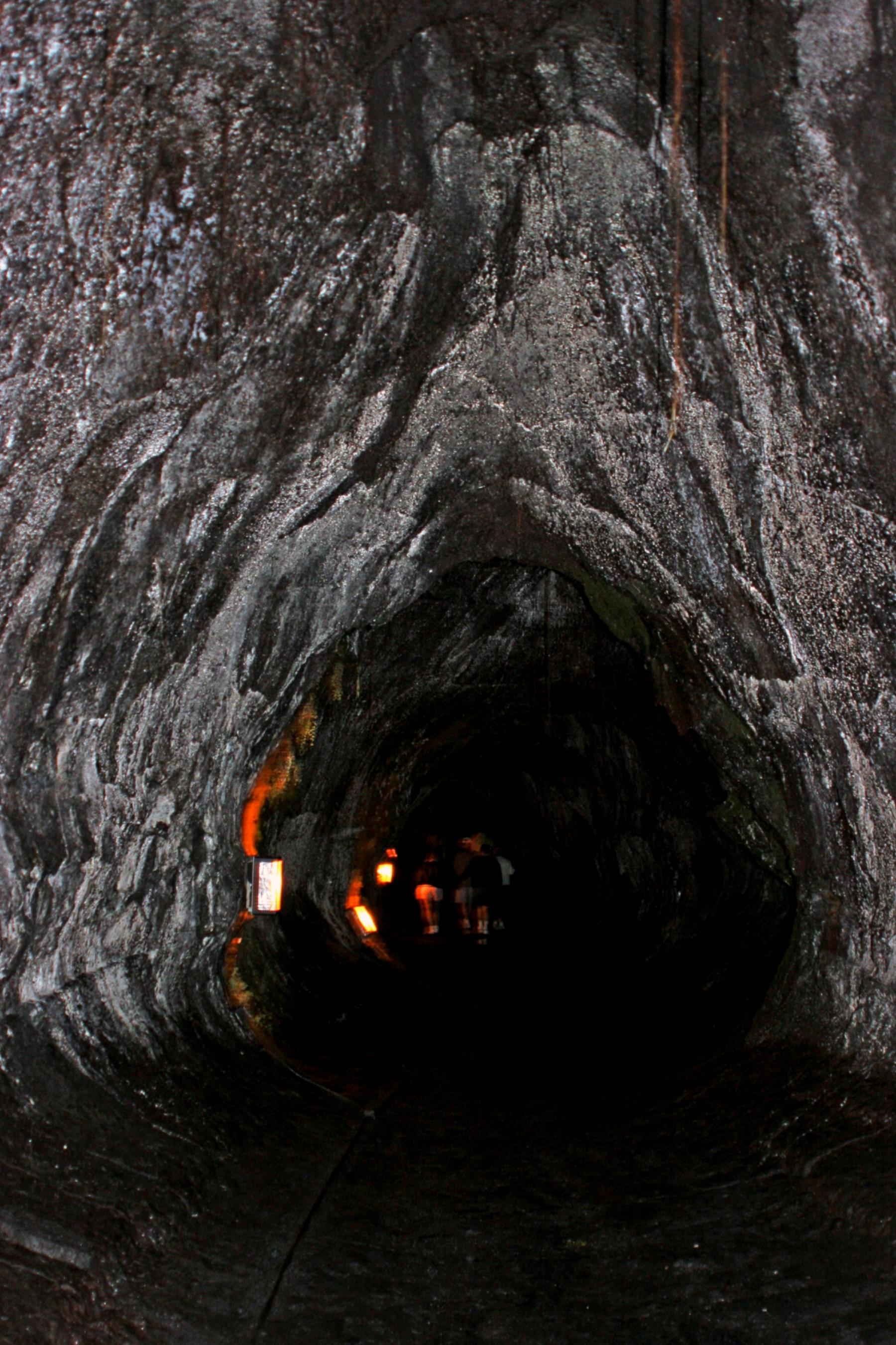 Lava tube, a long cave where lava had flowed, Volcano National Park, Island of Hawaii, Hawaii.