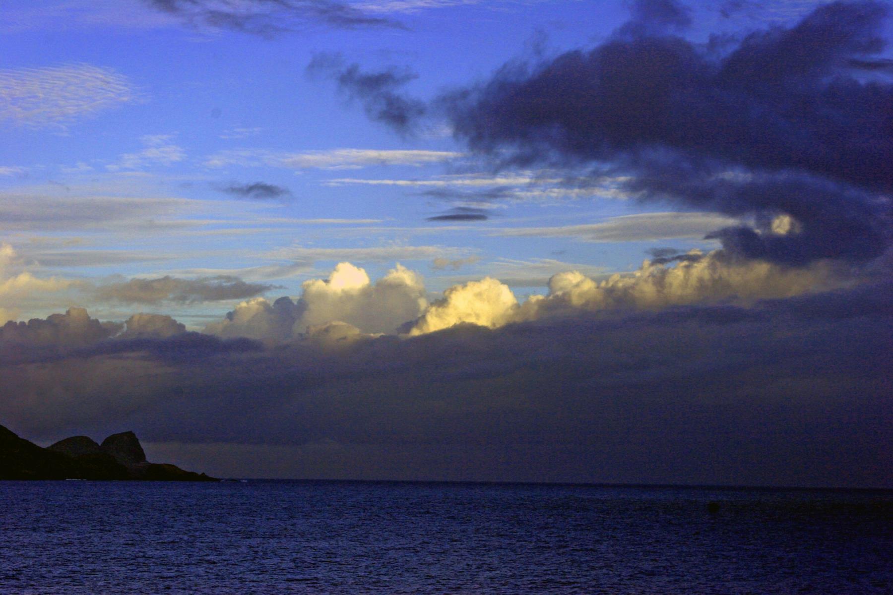 Sunrise and clouds over the mountains of the Island of Maui, Hawaii.