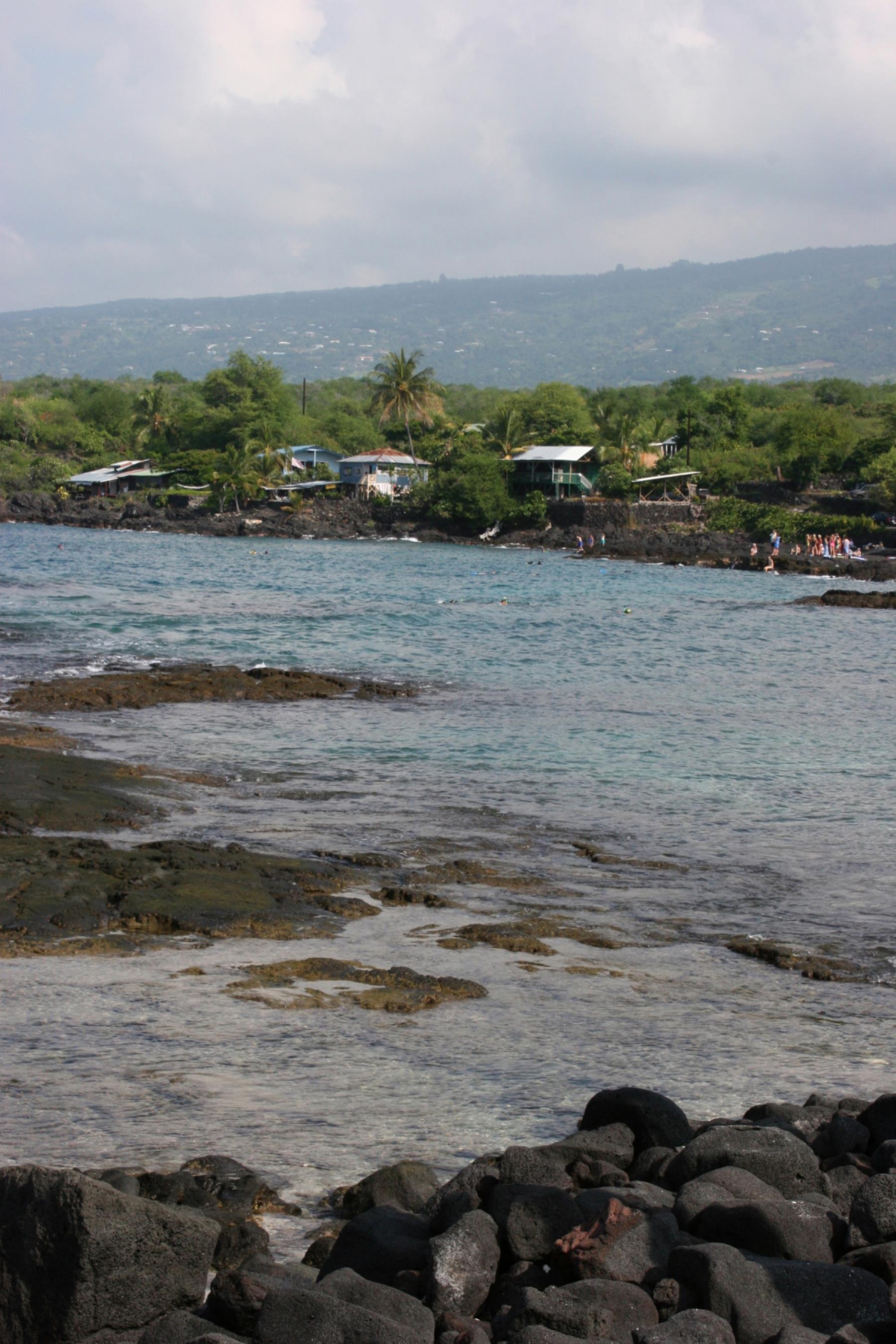 rocky shore; shore line; bay; ocean; sea; pu'uhonua o honaunau national historical park; kona; island of hawaii; hawaii; bays; oceans; seas