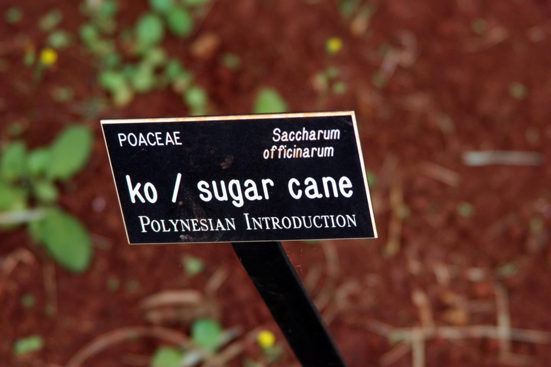 sign; sugar cane; allerton garden; kuai national botanical garden; kuai; hawaii; signs; sugar canes