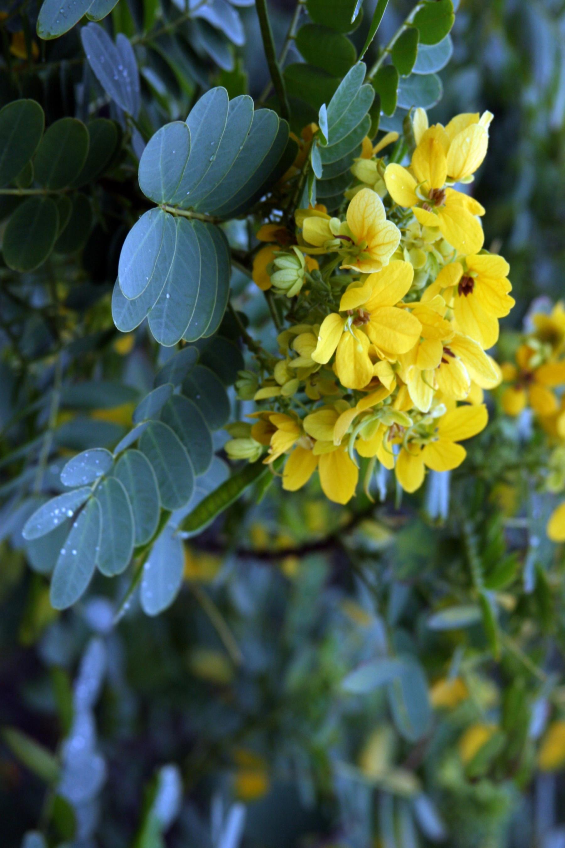 Yellow flowers near Opaekaa Falls, Kuai, Hawaii