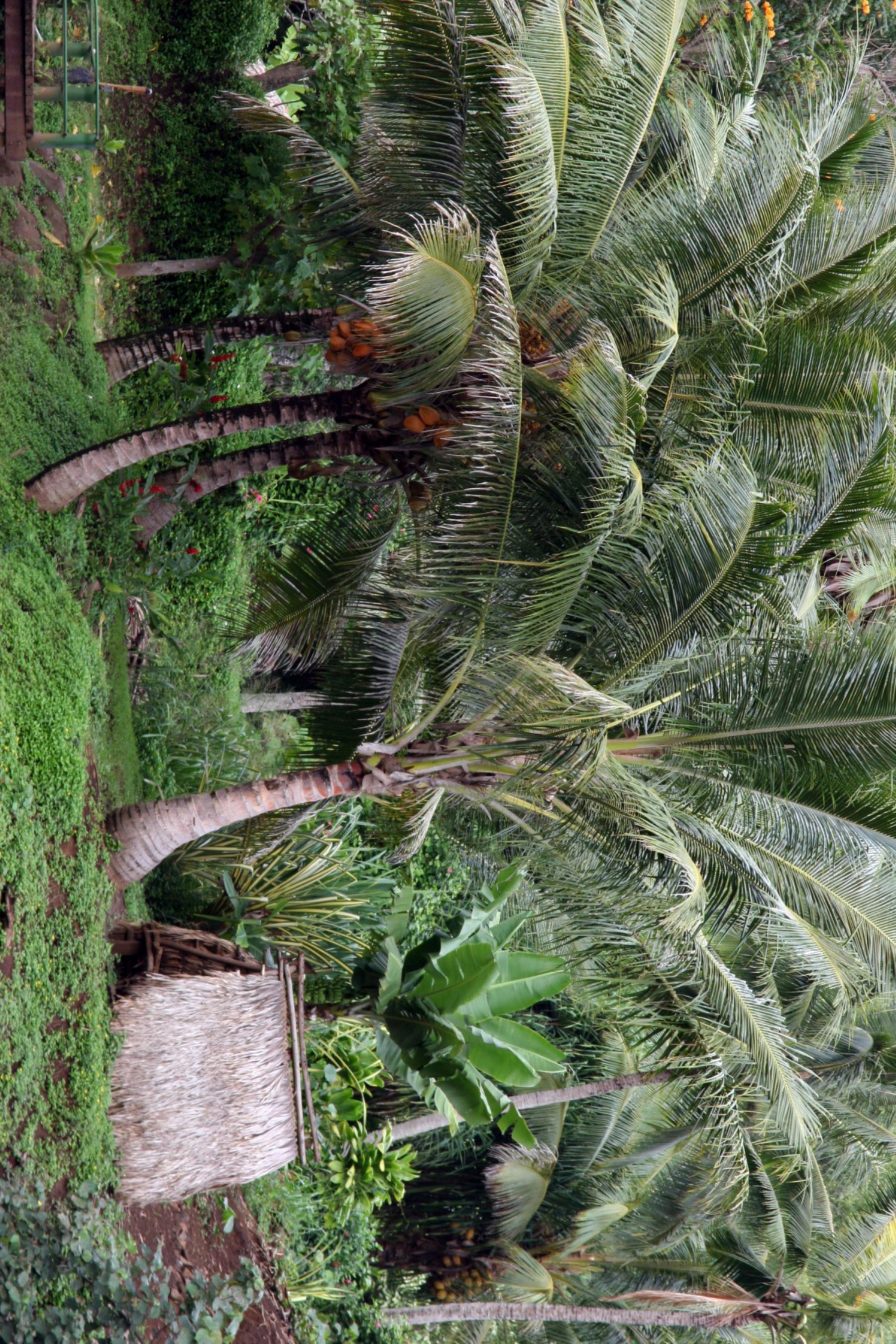 grass hut; palm trees; palm; tree; wailua river; kuai; hawaii; palms; trees