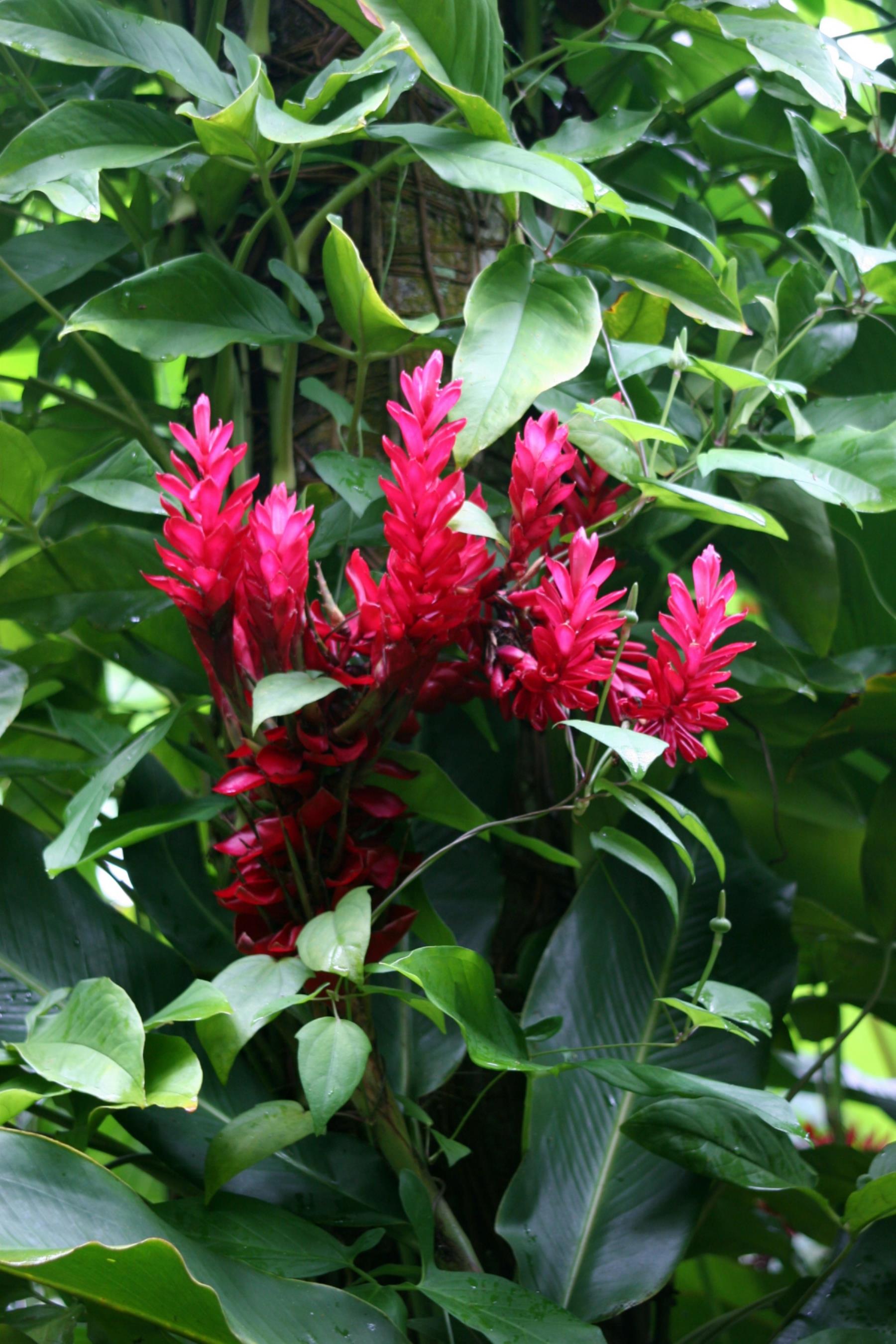 red ginger; red flowers; flower; red; fern grotto; kuai; hawaii; flowers