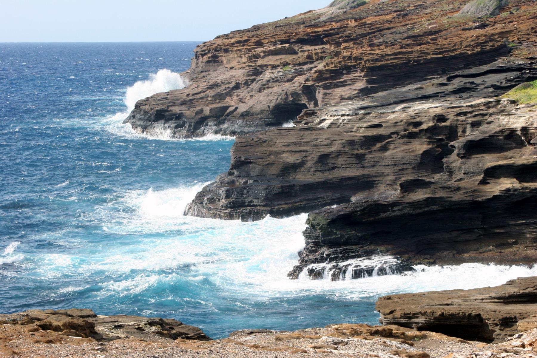 Waves crashing onto the shore near Makapuu, O'ahu, Hawaii