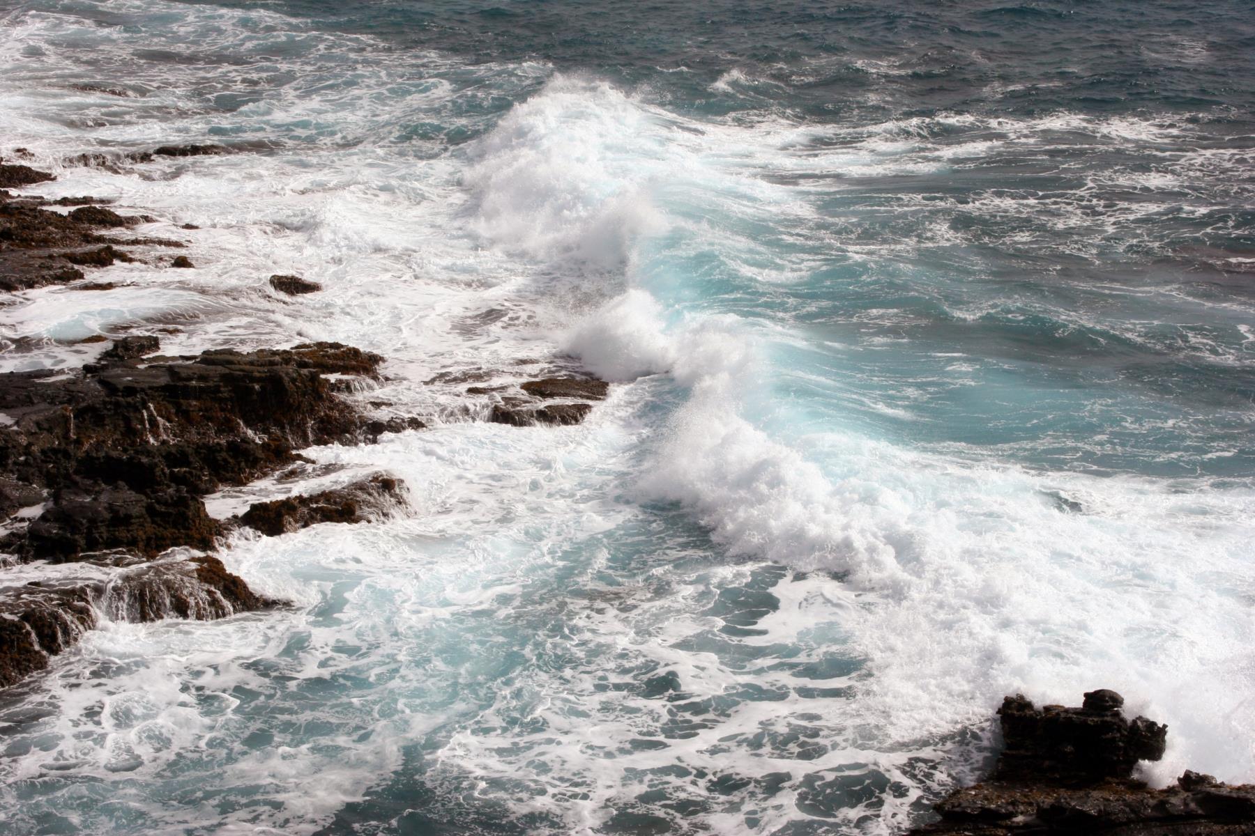 Waves crashing onto the shore near Makapuu, O'ahu, Hawaii