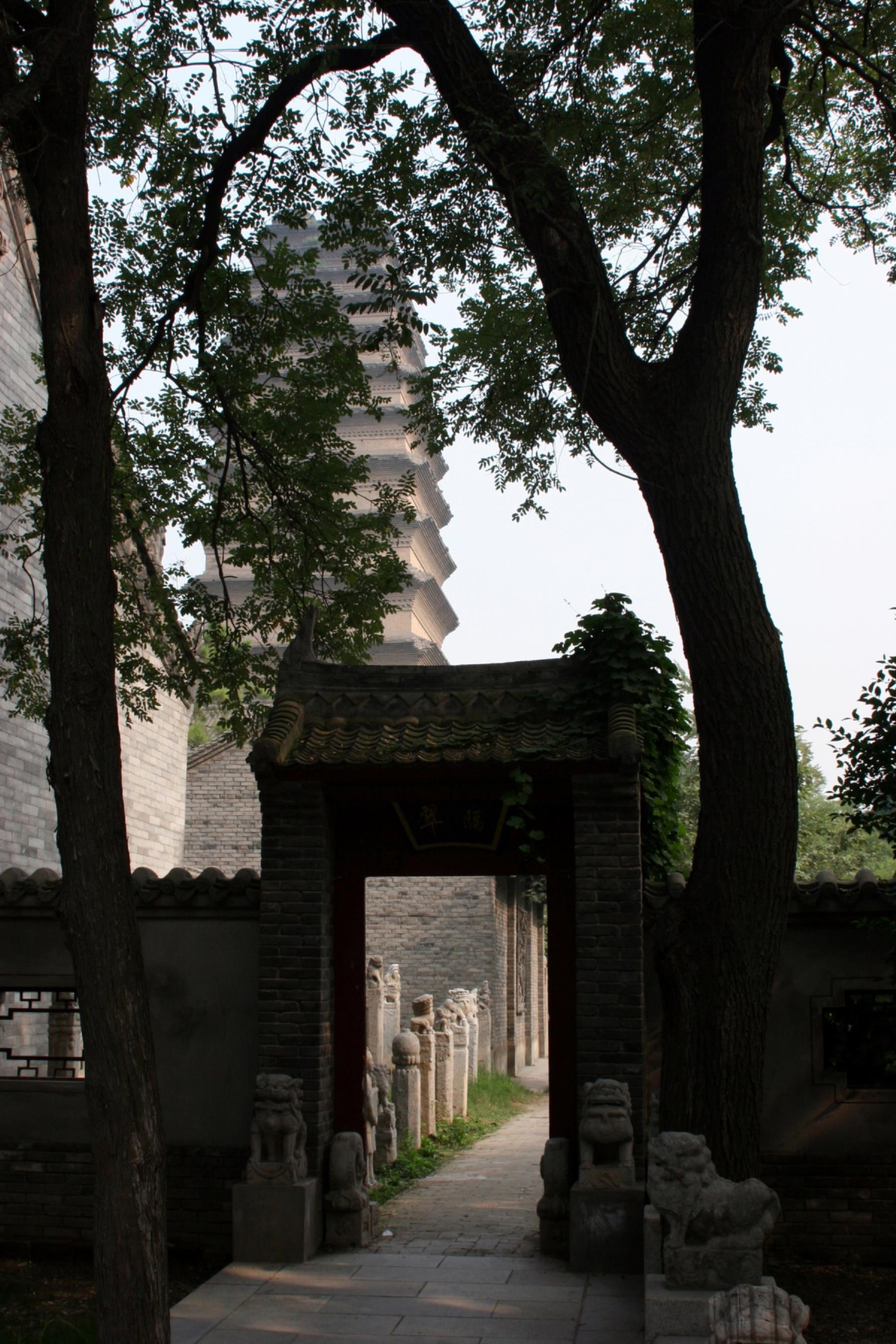 Entrance to ancient cemetery, Small Wild Goose Pagoda, built in 709 A. D., Xian, China.