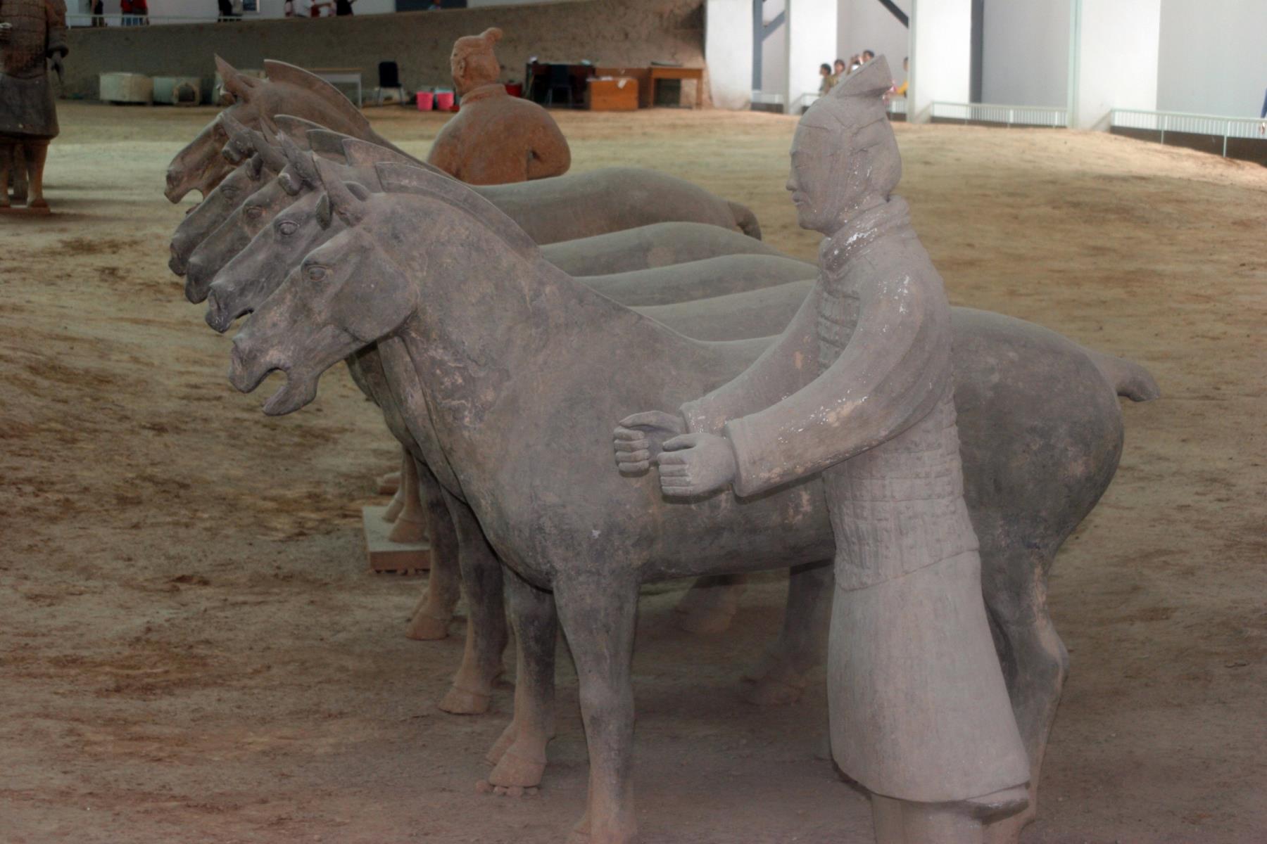 Terracota warriors and horses ![]() Terracota warriors and horses, Xian, China. These warriors guarded the tomb of Qin Shi Huangdi, a despotic ruler of China about 2, 200 years ago. There are 7, 000 figures, each originally covered with colorful paint. The ruler forced 70, 000 people to work 36 years to build these warriors and the tomb. Archaeological excavations began in 1974 when the site was discovered by a farmer digging a well. terracota warriors; horse; guard; 2200 years old; 7000 figures; xian; china; horses; guards Bible Hub |