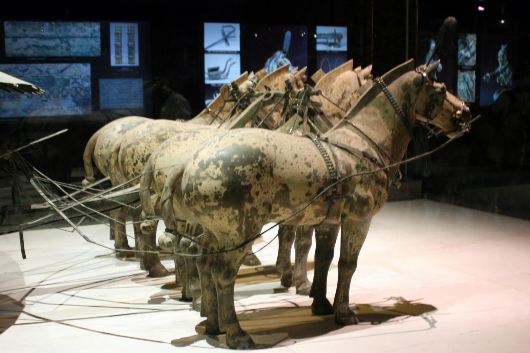 Bronze horses and chariots ![]() Bronze horses and chariots at the museum of the terracota warriors, Xian, China. These warriors guarded the tomb of Qin Shi Huangdi, a despotic ruler of China about 2, 200 years ago. There are 7, 000 figures, each originally covered with colorful paint. The ruler forced 70, 000 people to work 36 years to build these warriors and the tomb. Archaeological excavations began in 1974 when the site was discovered by a farmer digging a well. bronze horses; bronze chariots; terracota warriors; guard; 2200 years old; 7000 figures; xian; china; guards Bible Hub |