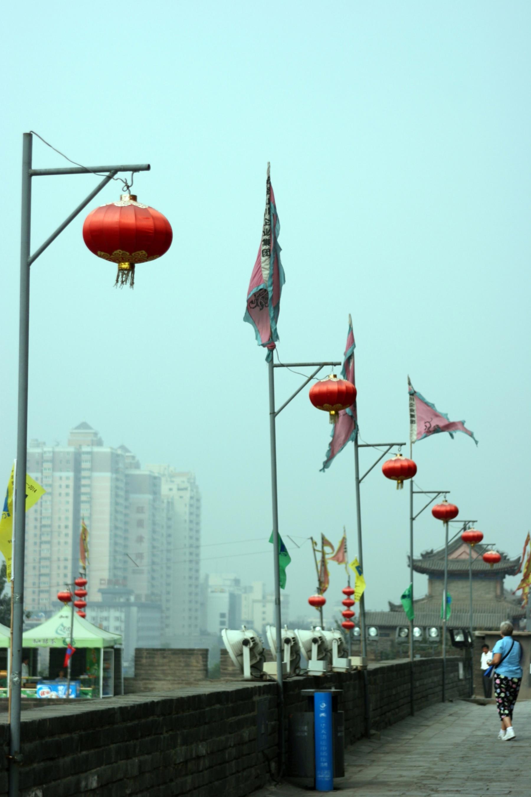 Xian city wall and gate with Chinese lanterns