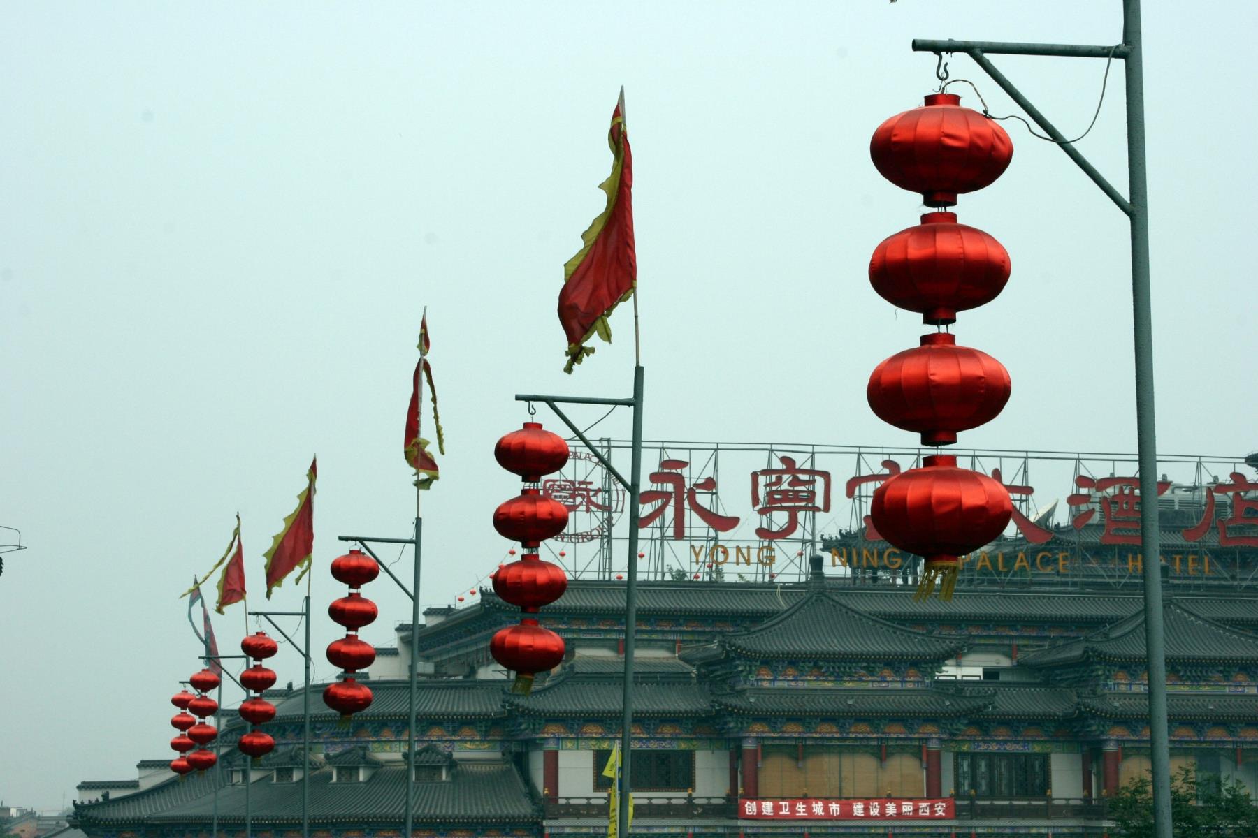 city wall; city gate; chinese lanterns; light; lamp; illumine; illuminate; xian; china; lights; lamps