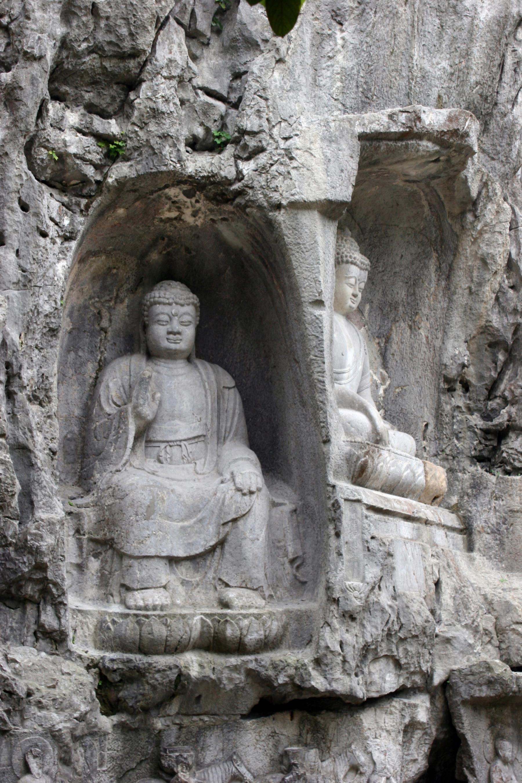 Stone statues of Buddha at the Ling Yin Buddhist Temple, Hangzhou, China.