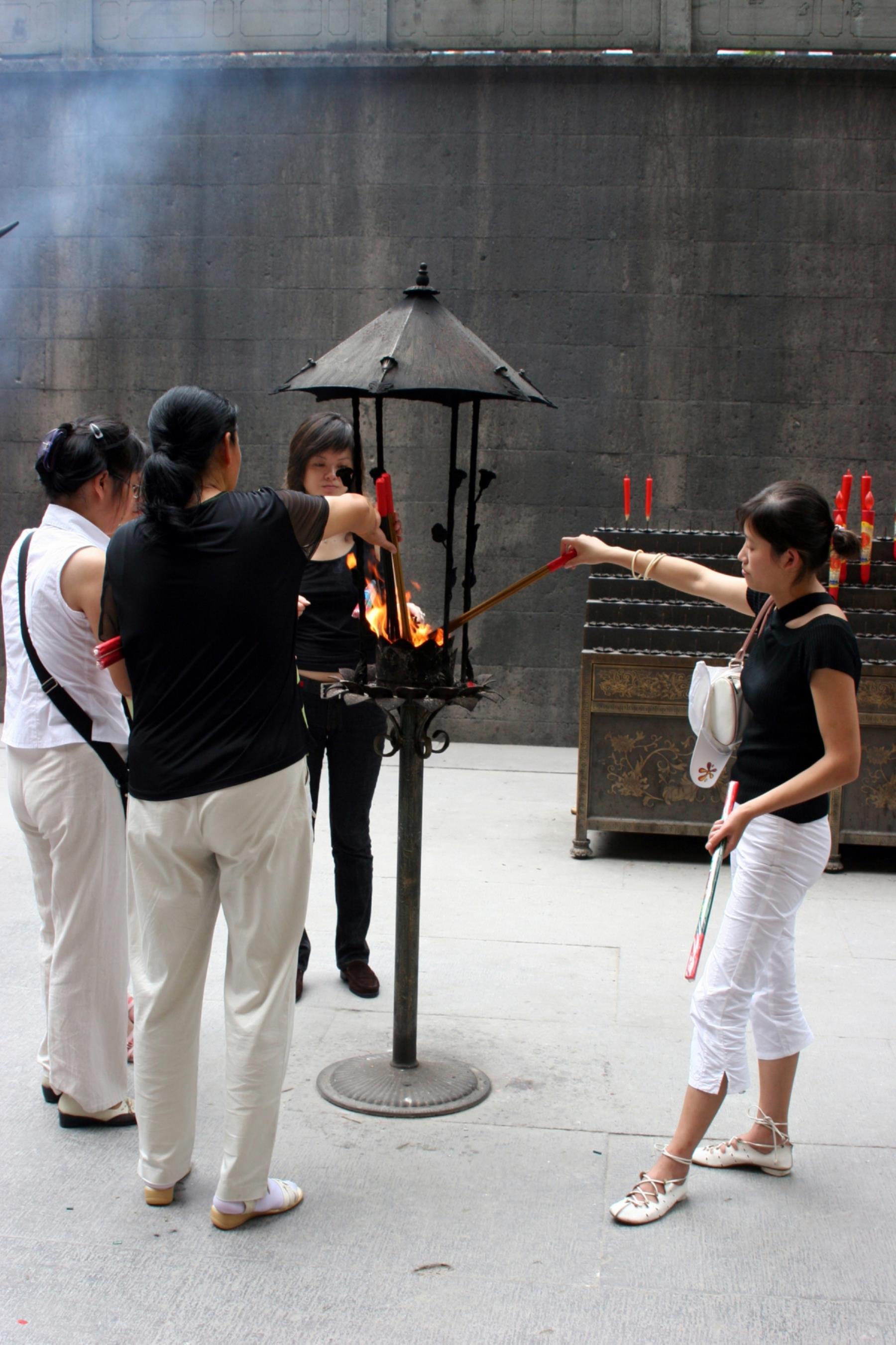 Offering incense to Buddha, Ling Yin Buddhist Temple, Hangzhou, China.