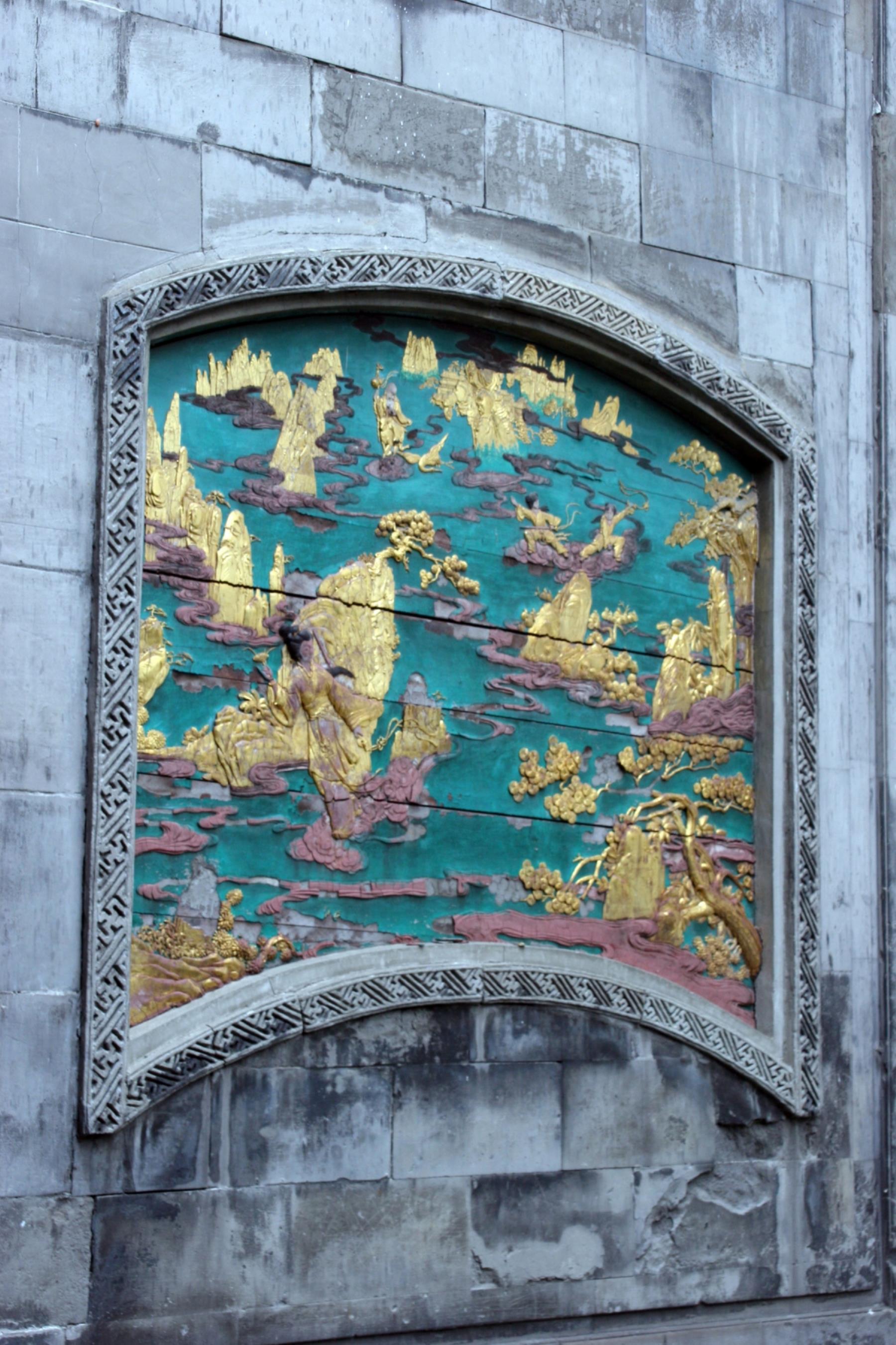 Chinese wall decoration; Hu Qing Yu Tang Medicine Shop, Hangzhou, China.