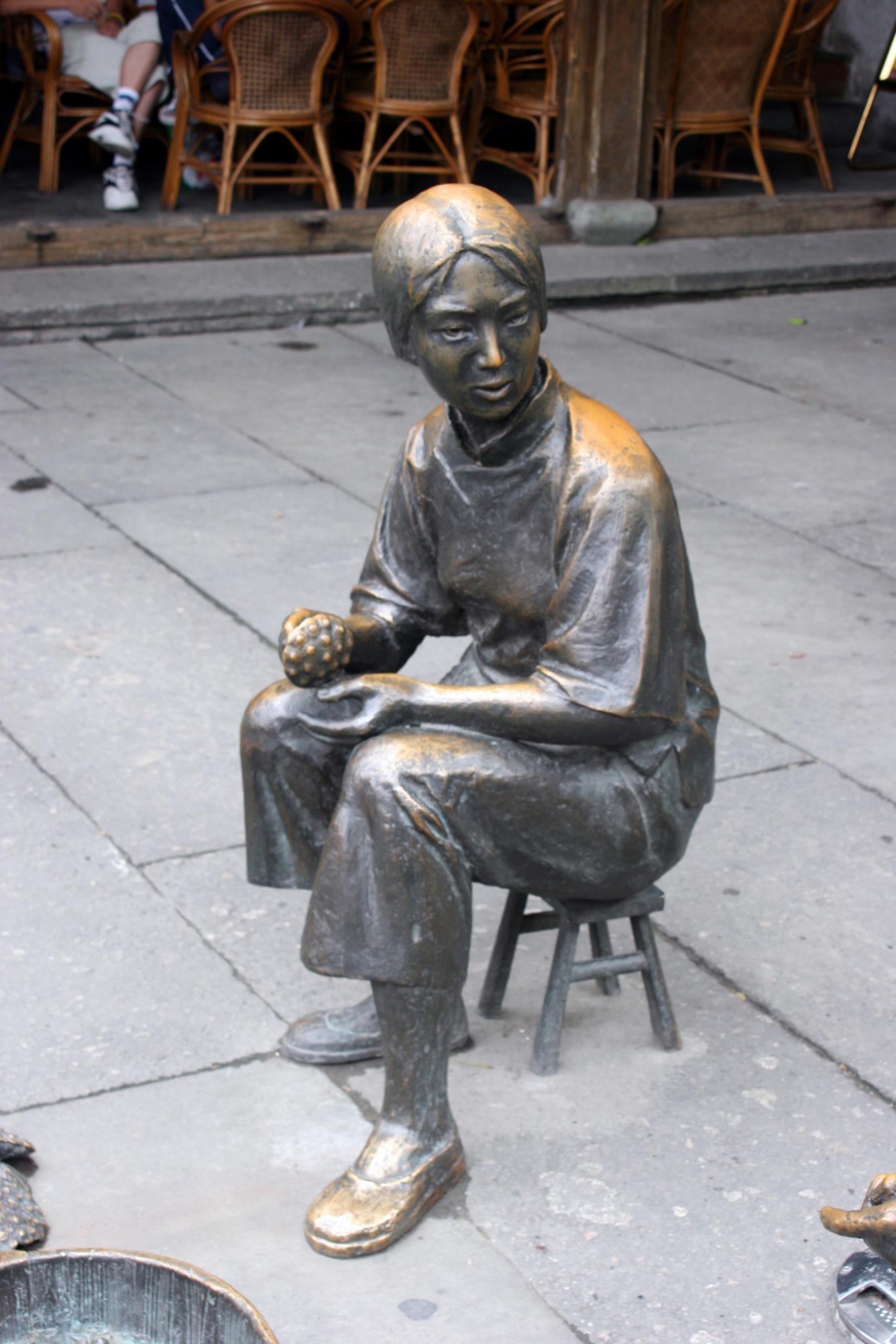 bronze statue of woman; woman's statue; statue; hangzhou; china