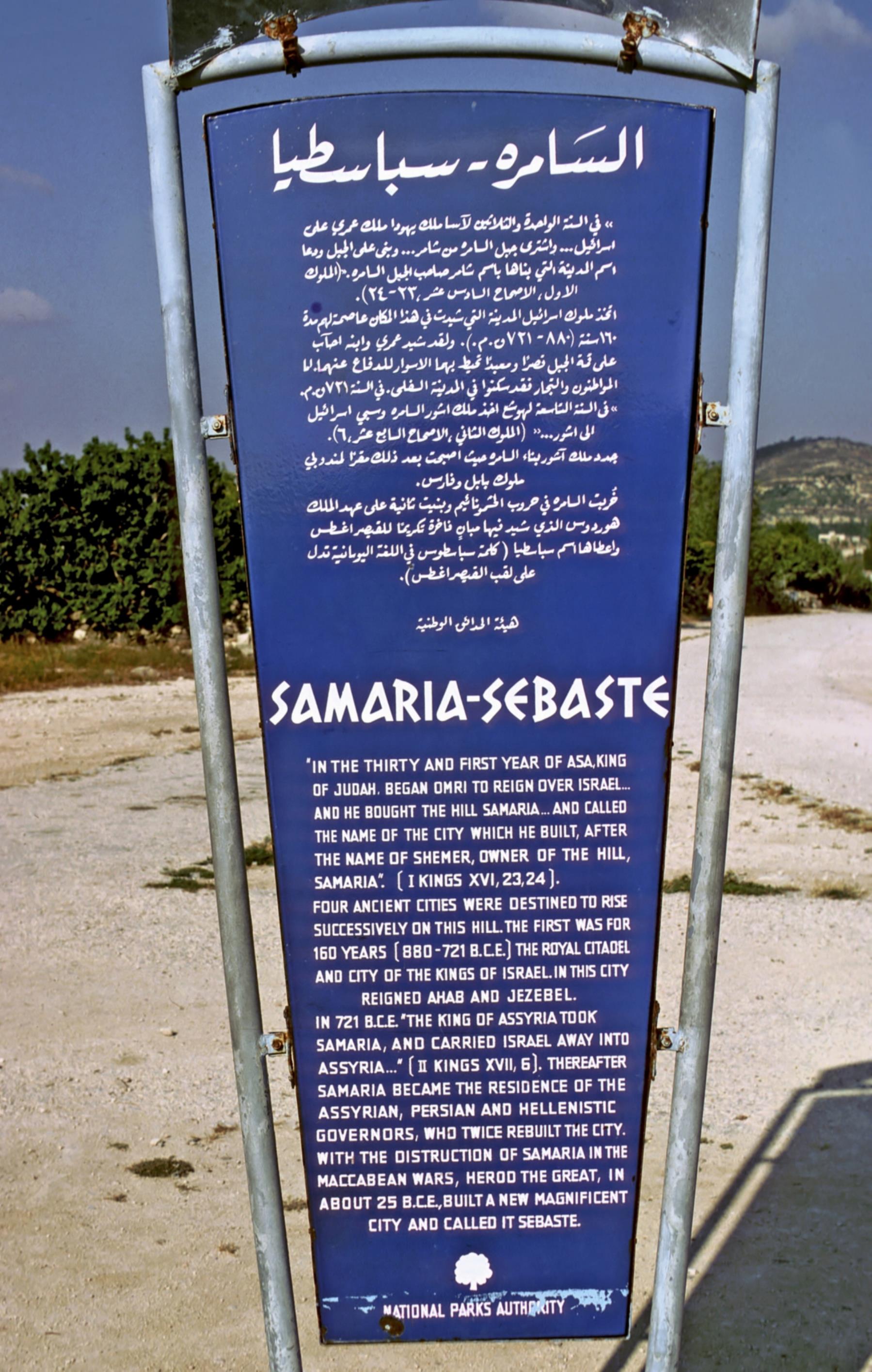 Samaria ![]() The city of Samaria was the capital of the Northern Kingdom, Israel, for about 200 years. Much of the work of Elijah and Elisha took part in or near this city. Samaria was named for Shemer, the original owner of the land, from whom King Omri of Israel bought it. Because of its wicked kings, Samaria was always associated with idolatry. Sign identifying Samaria. samaria; city; northern; kingdom; israel; prophet; elijah; elisha; shemer; omri; king; idolatry; sign; archaeology; antiquity; artifacts; ruin; remains; cities; kingdoms; prophets; kings; signs; ruins Bible Hub |