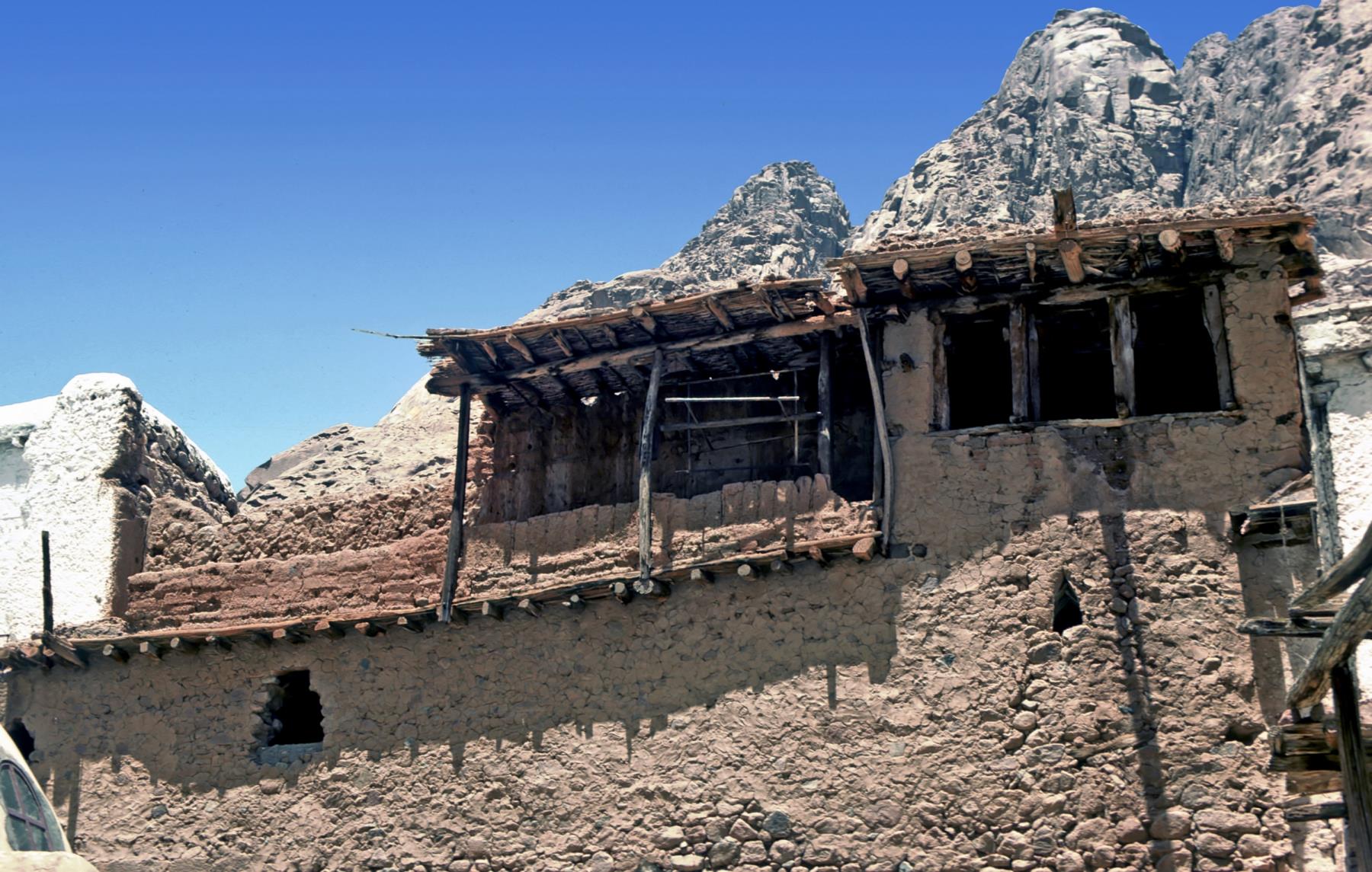 When the Israelites left Egypt and slavery, they reached Mount Sinai by the third month, camping at the foot of the mountain. Here God gave the Ten Commandments and the Law (Exodus 19--20). Later Elijah visited this mountain, also called Horeb, and heard God speak to him in a quiet voice (1 Kings 19:4-8). The exact location of Mount Sinai is uncertain, but since the 4th century A. D., a tradition has placed it near St. Catherine's Monastery, or Monastery of St. Catherines. This mountain of tradition is called Jebel Musa, or Mountain of Moses. St. Catherine's Monastery is seen in the picture.