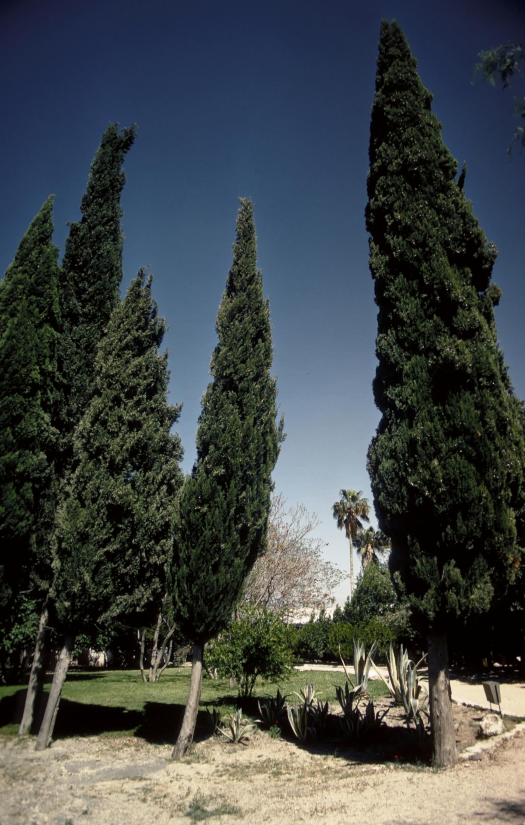 Megiddo, Tell El Mutesellim, is in the Plain of Esdraelon, often thought to be the Armageddon of Revelation 16:16. Megiddo guarded the caravan route from Gaza in the south to Damascus in the north, strategic for the movement of goods and armies. Near here, Deborah and Barak won a great battle (Judges 5:19, 20), Gideon defeated the Midianites (Judges 6:33), and Saul died in battle (1 Samuel 31). Today Megiddo is only a tell, ruins of many periods of history in different layers. It was excavated by the Oriental Institute of Chicago, starting in 1925. Cedar trees at Megiddo.