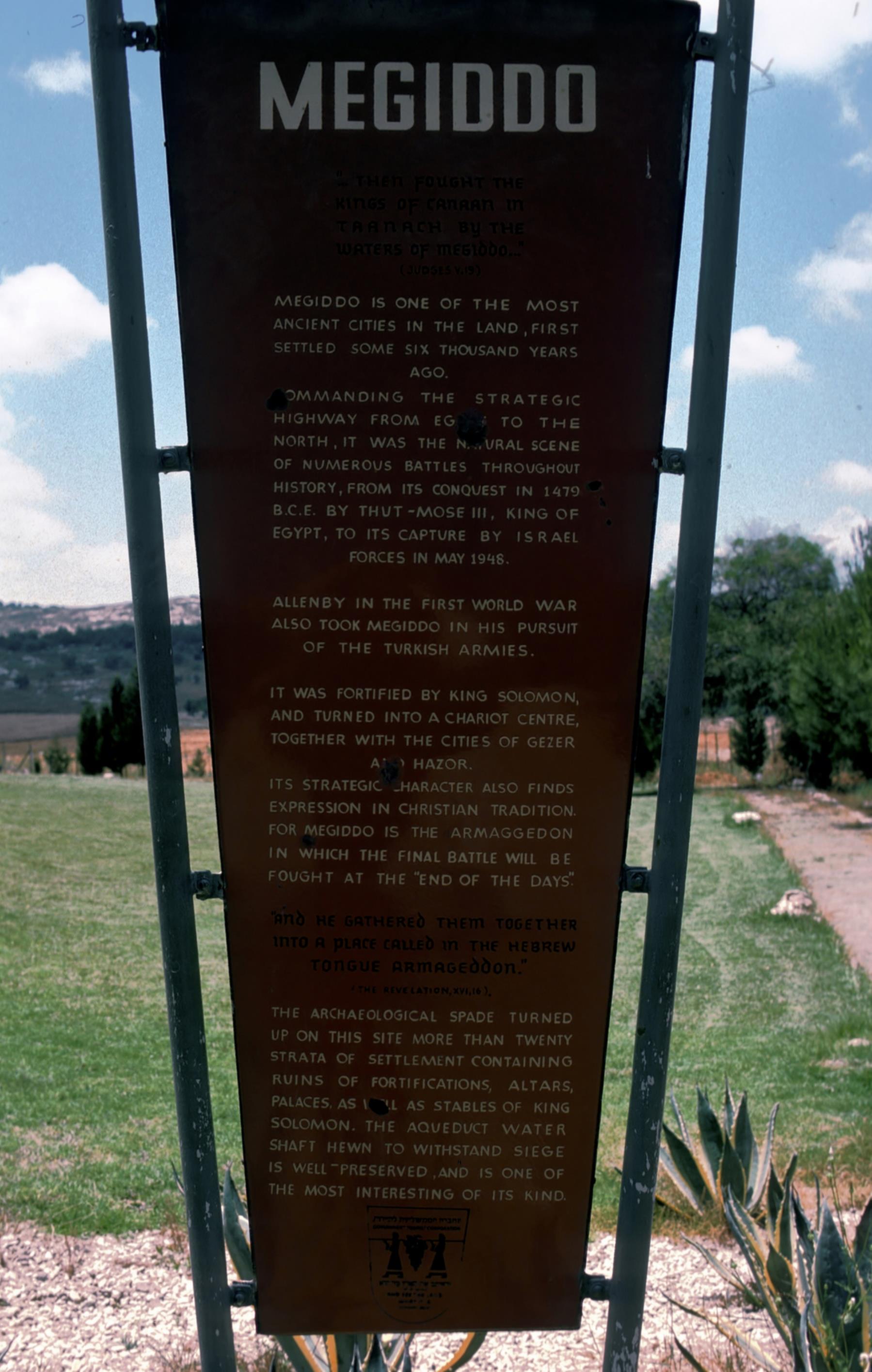 Megiddo ![]() Megiddo, Tell El Mutesellim, is in the Plain of Esdraelon, often thought to be the Armageddon of Revelation 16:16. Megiddo guarded the caravan route from Gaza in the south to Damascus in the north, strategic for the movement of goods and armies. Near here, Deborah and Barak won a great battle (Judges 5:19, 20), Gideon defeated the Midianites (Judges 6:33), and Saul died in battle (1 Samuel 31). Today Megiddo is only a tell, ruins of many periods of history in different layers. It was excavated by the Oriental Institute of Chicago, starting in 1925. Sign identifying Megiddo. megiddo; tell; el; mutesellim; plain; esdraelon; armageddon; caravan; route; deborah; barak; battle; gideon; midianites; saul; death; dying; ruin; archaeology; antiquity; artifacts; excavation; oriental; institute; sign; plains; caravans; routes; battles; deaths; ruins; excavations; orientals; institutes; signs Bible Hub |