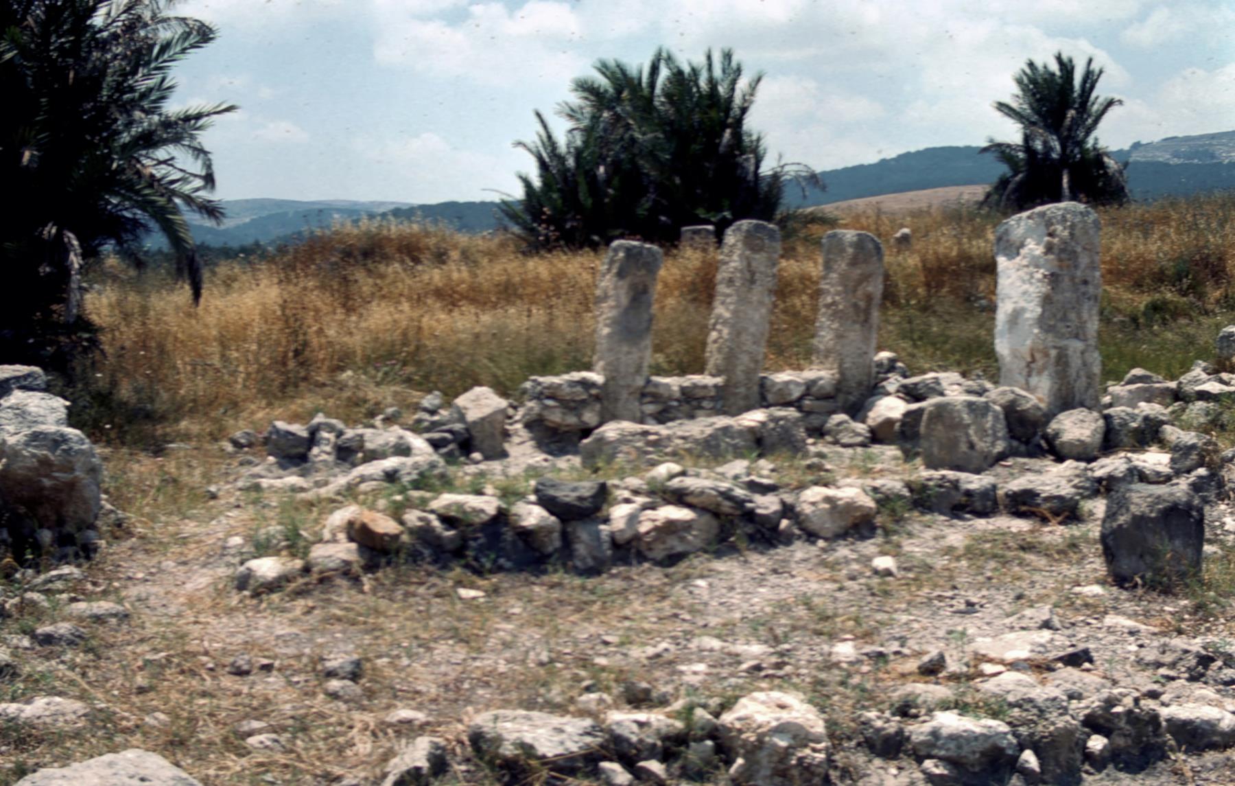 Megiddo, Tell El Mutesellim, is in the Plain of Esdraelon, often thought to be the Armageddon of Revelation 16:16. Megiddo guarded the caravan route from Gaza in the south to Damascus in the north, strategic for the movement of goods and armies. Near here, Deborah and Barak won a great battle (Judges 5:19, 20), Gideon defeated the Midianites (Judges 6:33), and Saul died in battle (1 Samuel 31). Today Megiddo is only a tell, ruins of many periods of history in different layers. It was excavated by the Oriental Institute of Chicago, starting in 1925. Excavated ruins of a public grain silo from the reign of Jeroboam, 792-752 B. C.