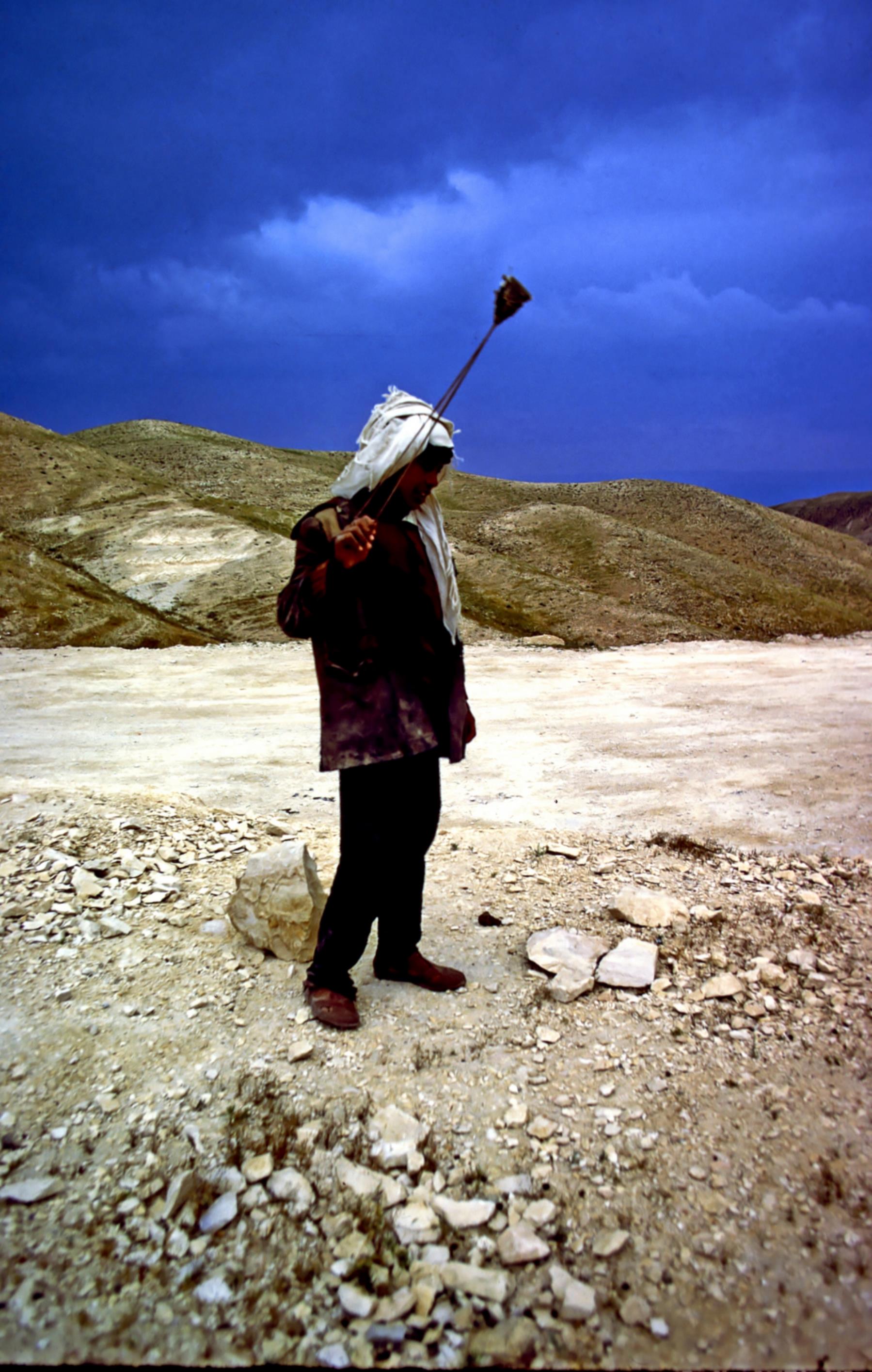In Roman times, the time of Jesus on earth, an old Roman road led from Jerusalem to Jericho, past the Inn of the Good Samaritan. Jesus walked on this road many times. A shepherd on the Jericho Road with a sling like the one David used against Goliath. The most famous story about Jericho is the battle of Jericho which Joshua led, when the walls fell outward, rather than inward (Joshua 6). This happened about 1, 400 B. C. But the history of Jericho goes back hundreds of years before Joshua. Jericho is actually three cities--the Old Testament city and the New Testament city, separated by about a mile, and modern Jericho near Old Testament Jericho. In modern Jericho we find Elisha's Springs, or Elisha's Fountain, known today as the Ain es-Sultan Spring. When the people of Jericho complained to Elisha that the water was bad, Elisha threw a bowl of salt into the spring and miraculously purified the water (2 Kings 2:19-22).