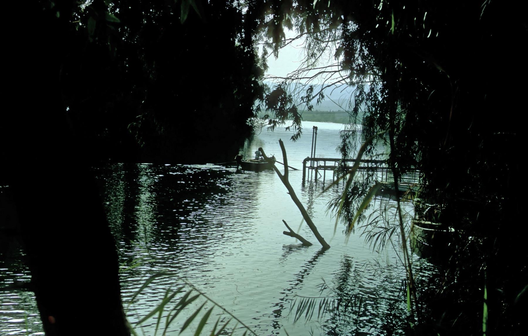 The Jordan River is the only flowing body of water in ancient Israel. It winds its way from the north into the Sea of Galilee, then empties at the southern end of the sea and resumes its serpentine path until it ends completely in the Dead Sea. Although it is only 70 miles from the Sea of Galilee to the Dead Sea, the river winds 200 miles. Before it enters the Sea of Galilee, it drops 800 feet, then another 600 feet on its way to the Dead Sea. The Jordan River as it leaves the Sea of Galilee.