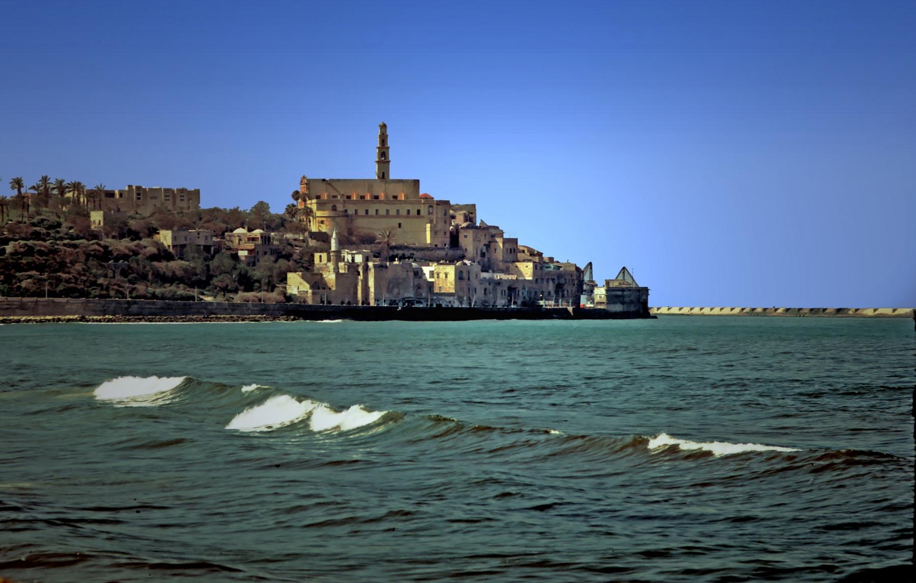 Joppa from the Mediterranean Sea ![]() Joppa from the Mediterranean Sea. Joppa, today called Jaffa, was once the seaport for Jerusalem. Hiram sent cedar logs from Lebanon to King Solomon for the Temple, floating them to Joppa (2 Chronicles 2:15). From Joppa the prophet Jonah ran away from God ( Book of Jonah), sailing from there toward Tarshish. Here Peter raised Tabitha, or Dorcas, from the dead (Acts 9:36-42). Later he was staying here at the house of Simon the Tanner when he saw a vision of unclean animals, which led him to visit Cornelius' house in Caesarea and win him to Christ. This is the traditional site of the home of Simon the Tanner. joppa; jaffa; mediterranean sea; seaport; 2 Chronicles 2:15; Acts 9:36-42; jonah; peter; tabitha; dorcas; simon the tanner; simon; vision of unclean animals; cornelius; house; home; dwelling; residence; seaports; houses; homes; dwellings; residences Bible Hub |