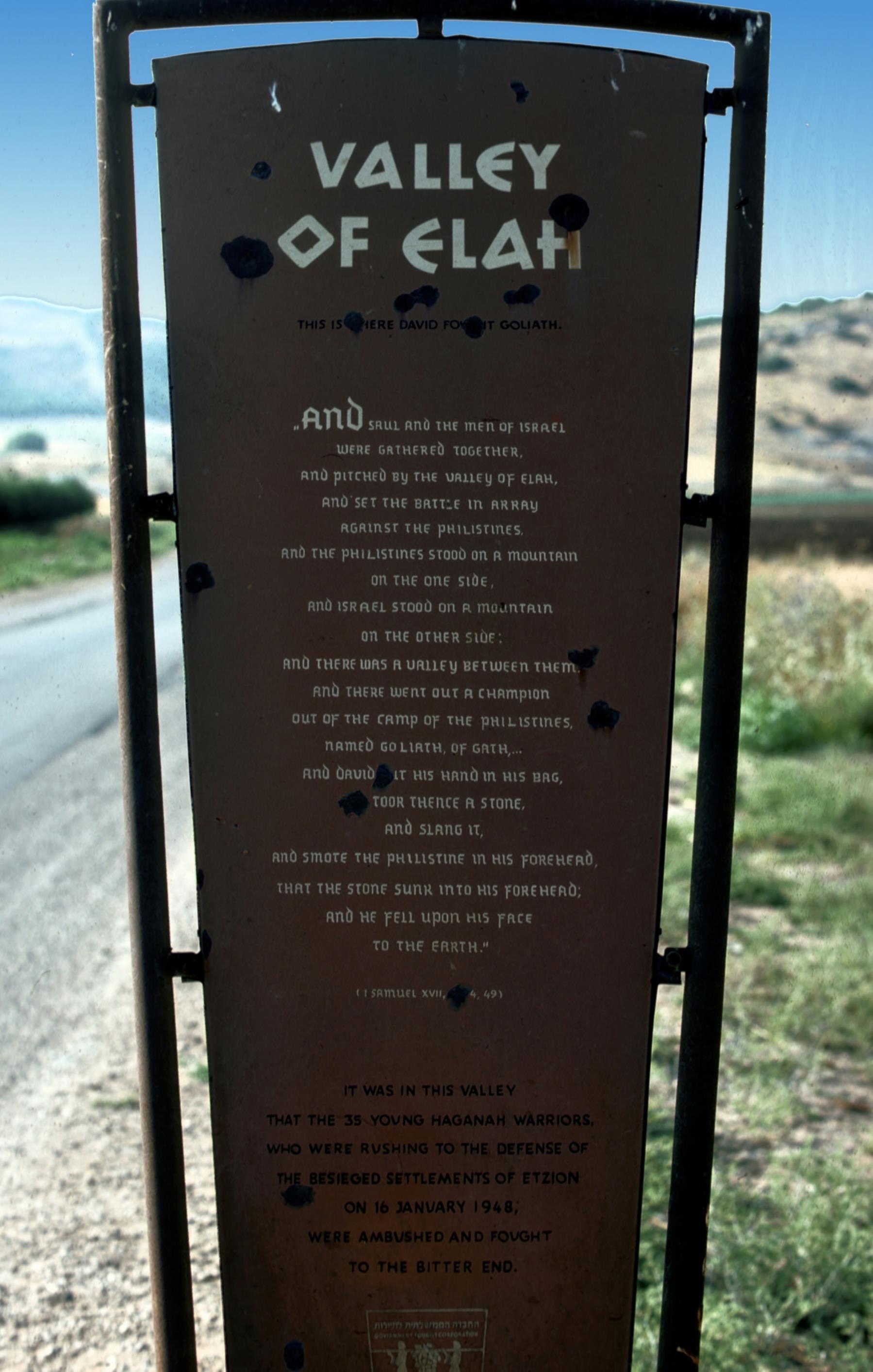 The Valley ![]() The Valley, or Vale, of Elah is best known as the site where David fought Goliath (1 Samuel 17:2ff). It is a valley in the Shephelah, the vast hill tract from the coastal plain to the hills of Judea and Samaria. It is 14 miles SW of Jerusalem. Other names for this valley are the current name Wadi es-Sant (Valley of the Acacia), and possibly the Valley of Shittim (Joel 3:18). Trees in this valley are acacias, terebinths, and oaks. The brook where David gathered stones is a wadi, with water in it only from recent rains. Sign identifying the Valley of Elah. valley; vale; elah; david; goliath; shephelah; judea; samaria; wadi; wadis; es-sant; acacia; acacias; shittim; terebinths; oak; brook; water; sign; valleys; vales; oaks; brooks; waters; signs; Joel 3:18; 1 Samuel 17:2 Bible Hub |