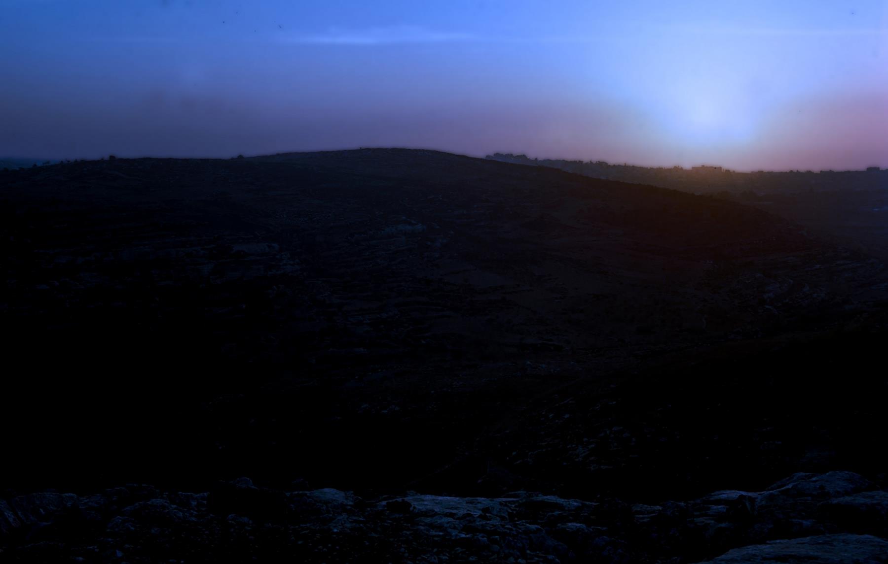 Twelve miles northwest of Jerusalem, on the border of Samaria and Judea, is a little Arab village named Beitin, sometimes called Beit El. Nearby is the site of ancient Bethel. Here Jacob stopped for the night enroute to Haran and dreamed of angels ascending and descending on a ladder, or stairway, to heaven. There is a British tradition that the stone which served as Jacob's pillow is now under the seat of the Coronation chair in Westminster Abbey. Bethel means house of God. Sunset over the Bethel area.