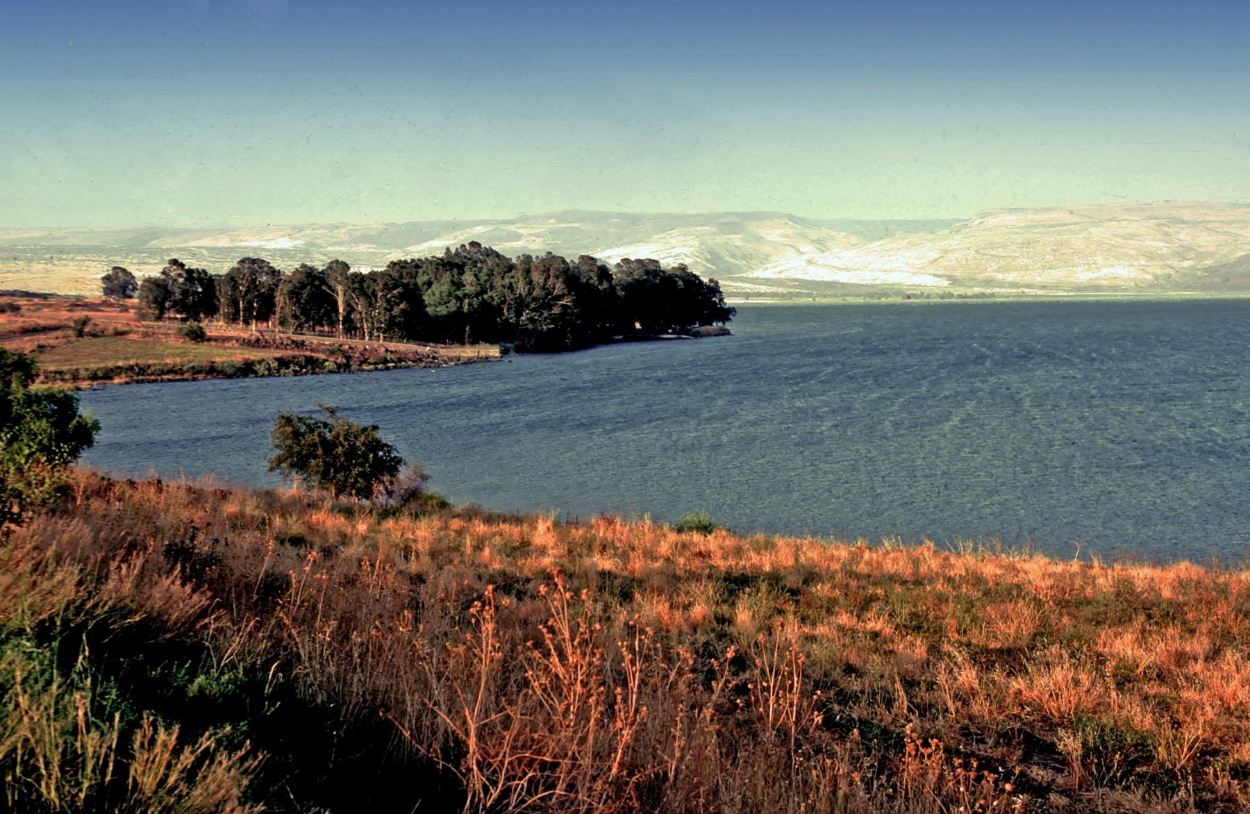 When Jesus' hometown Nazareth rejected him, he moved to Capernaum, an important village on the shores of the Sea of Galilee. Here Jesus called Mathew to leave his tax collection business and follow him. A high government official or nobleman lived here (John 4:46) and Jesus healed his son; a Roman centurion, commander of 100 soldiers, lived here and Jesus healed his servant. Jesus did many other miracles in Capernaum. Many wonderful archaeological antiquities have been found here. Looking toward the east, we see Capernaum nestled among the trees growing beside the Sea of Galilee.