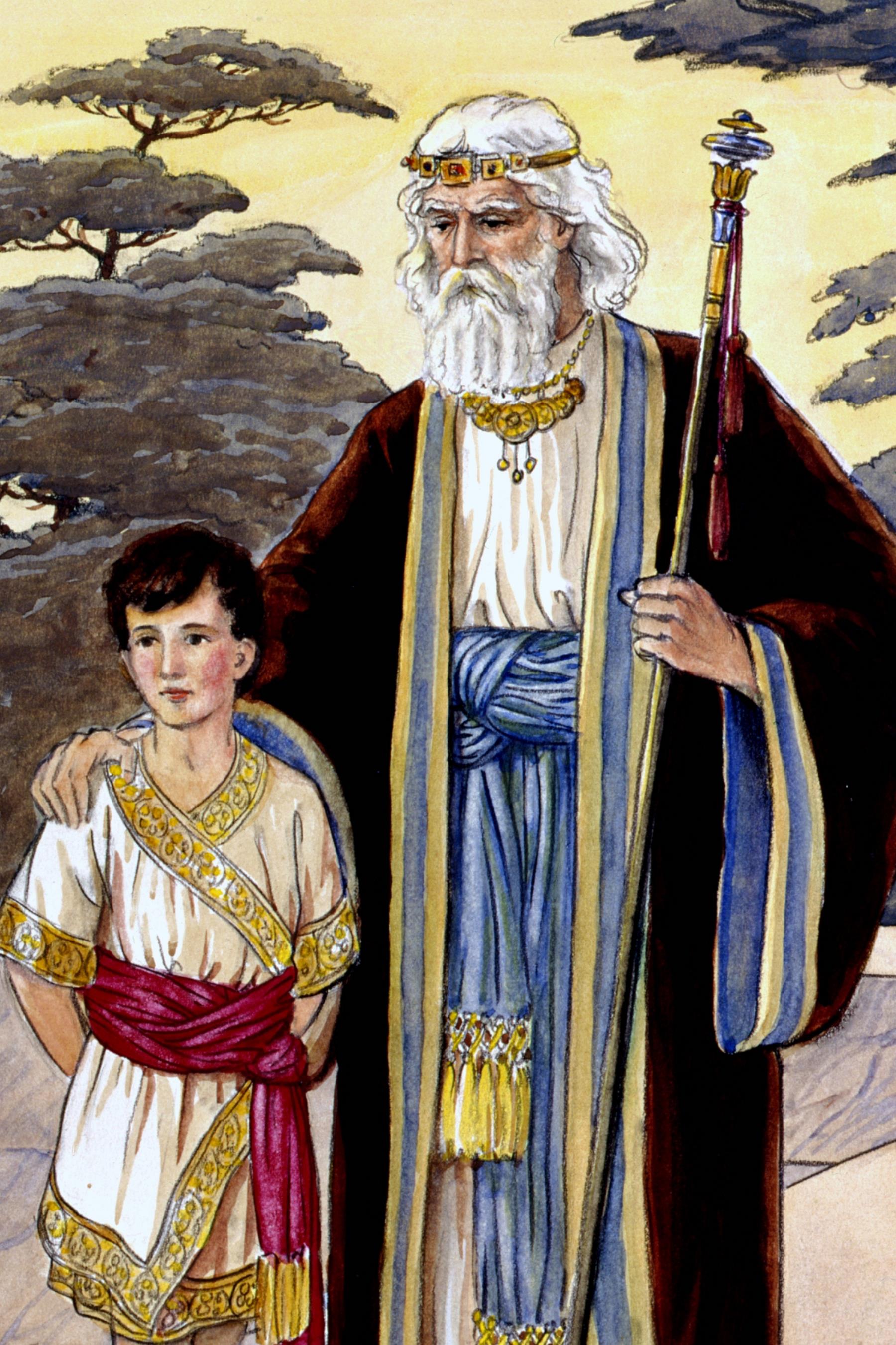 Eli the high priest cares for the boy Samuel, who serves him at the tabernacle--