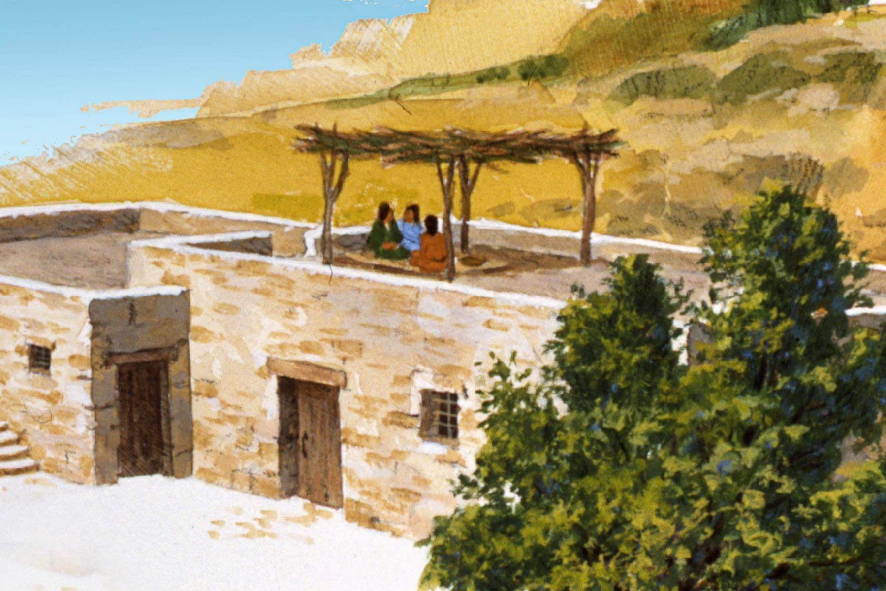Bible-time houses in Israel were usually made of stone or clay bricks. Roofs were wooden rafters covered by reeds of branches. Most houses had open windows since glass was not yet used for windows as today. Often significant activity was carried out on the flat, open rooftops, or in open courtyards. Water was drawn from an open well.