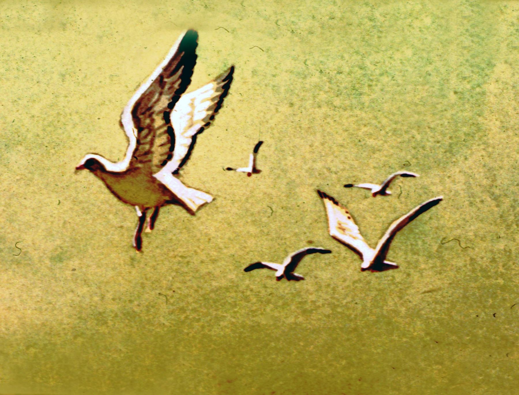 Birds flying through the air