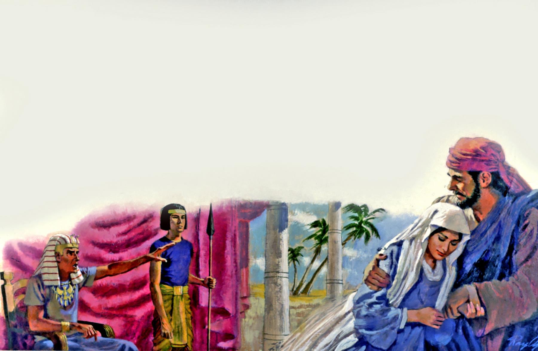 This is a moment of shame for Abram and Sarai, for Pharaoh is ordering them from Egypt, never to return. Abram had lied to the Egyptians about his wife Sarai. She is my sister, he said. It was half true, for Sarai was his half sister. Why did Abram lie about his wife? He was afraid the Egyptians would kill him so they could take Sarai. They took Sarai anyway and gave her to Pharaoh. But the Lord sent plagues to Pharaoh's household. Then Pharaoh knew about the lie. See Genesis 12:10-20.