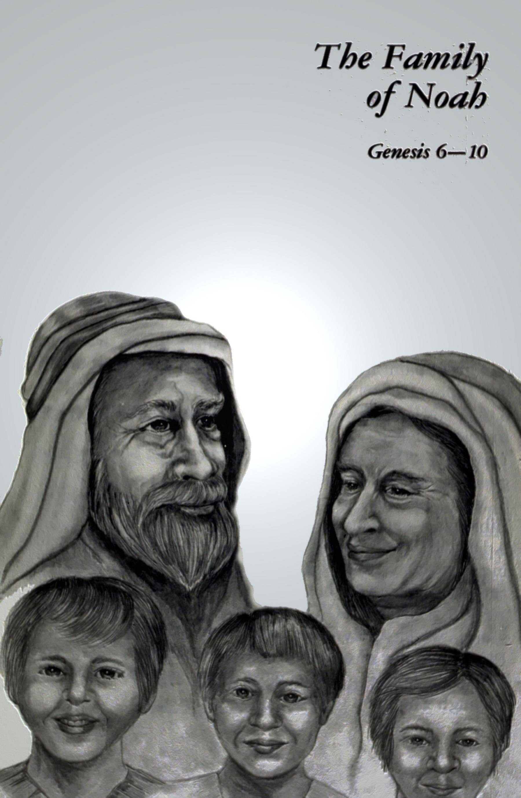 An artist's concept of the family of Noah, with his wife, and his three sons--Ham, Shem, and Japheth.