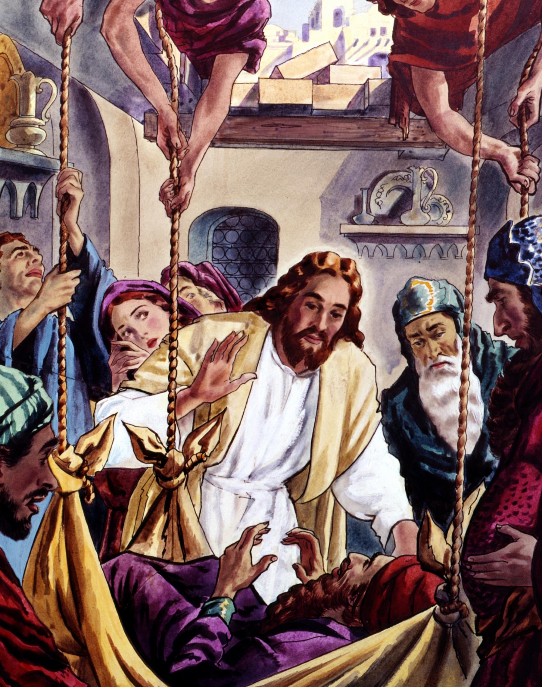 Jesus healed a paralyzed man who was let down to Him through a roof (Matthew 9:1-8; Luke 5:12-26).