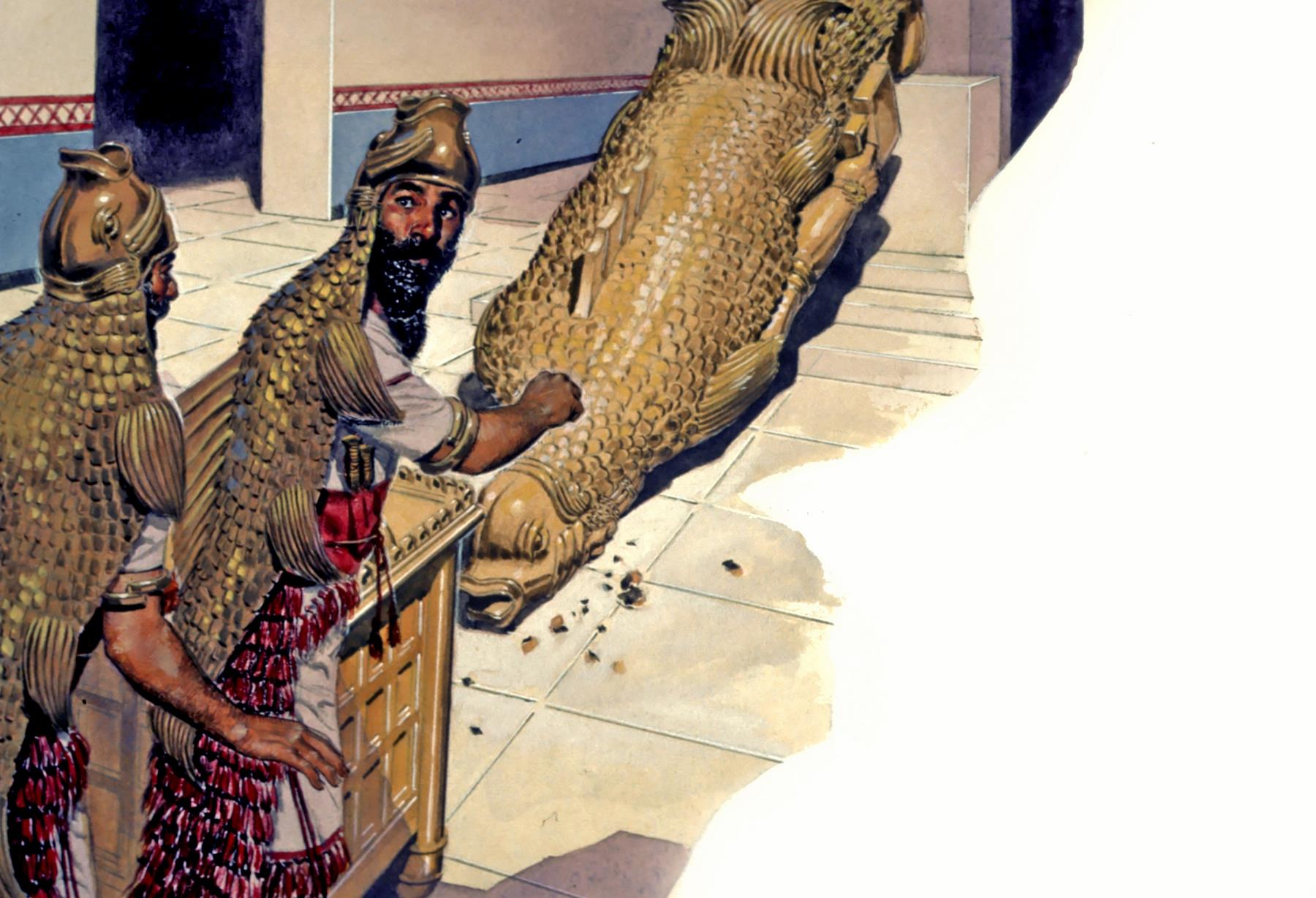 Philistines ![]() When the Philistines captured the Ark of the Covenant in battle, they put it into a temple of Dagon, their agricultural god, shaped like half-man and half-fish. But the Lord caused the statue of Dagon to fall down before the Ark (1 Samuel 5). philistines; ark of the covenant; battle; temple of dagon; god; fall down; 1 Samuel 5; battles; gods Bible Hub |