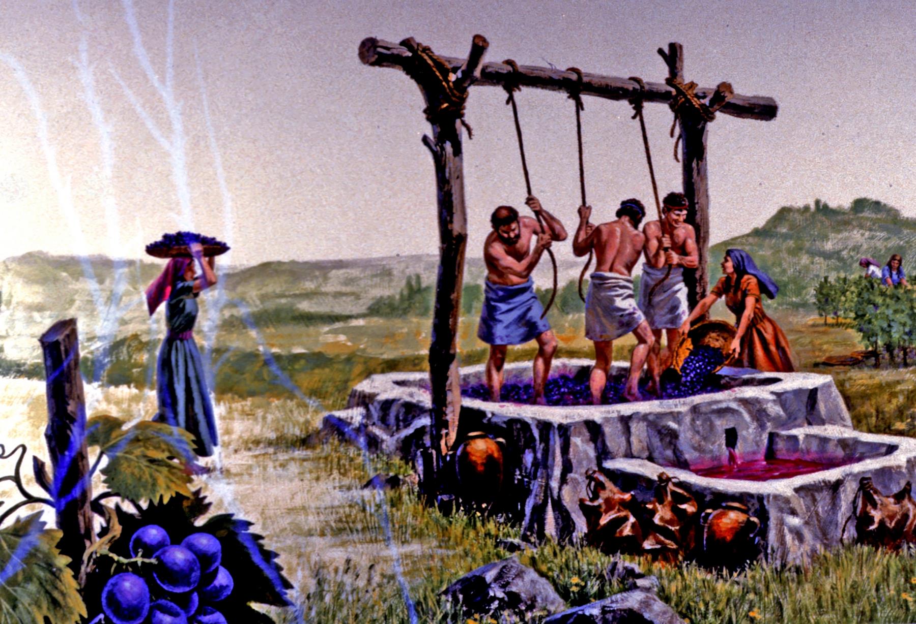 A Bible time winepress was a large vat ![]() A Bible-time winepress was a large vat. When filled with grapes, workers held onto ropes while they stomped on the grapes with bare feet, squeezing the juice from the grapes. The juice then ran out into a lower vat. winepress; wine; grape; grape juice; vat; wines; grapes; vats Bible Hub |