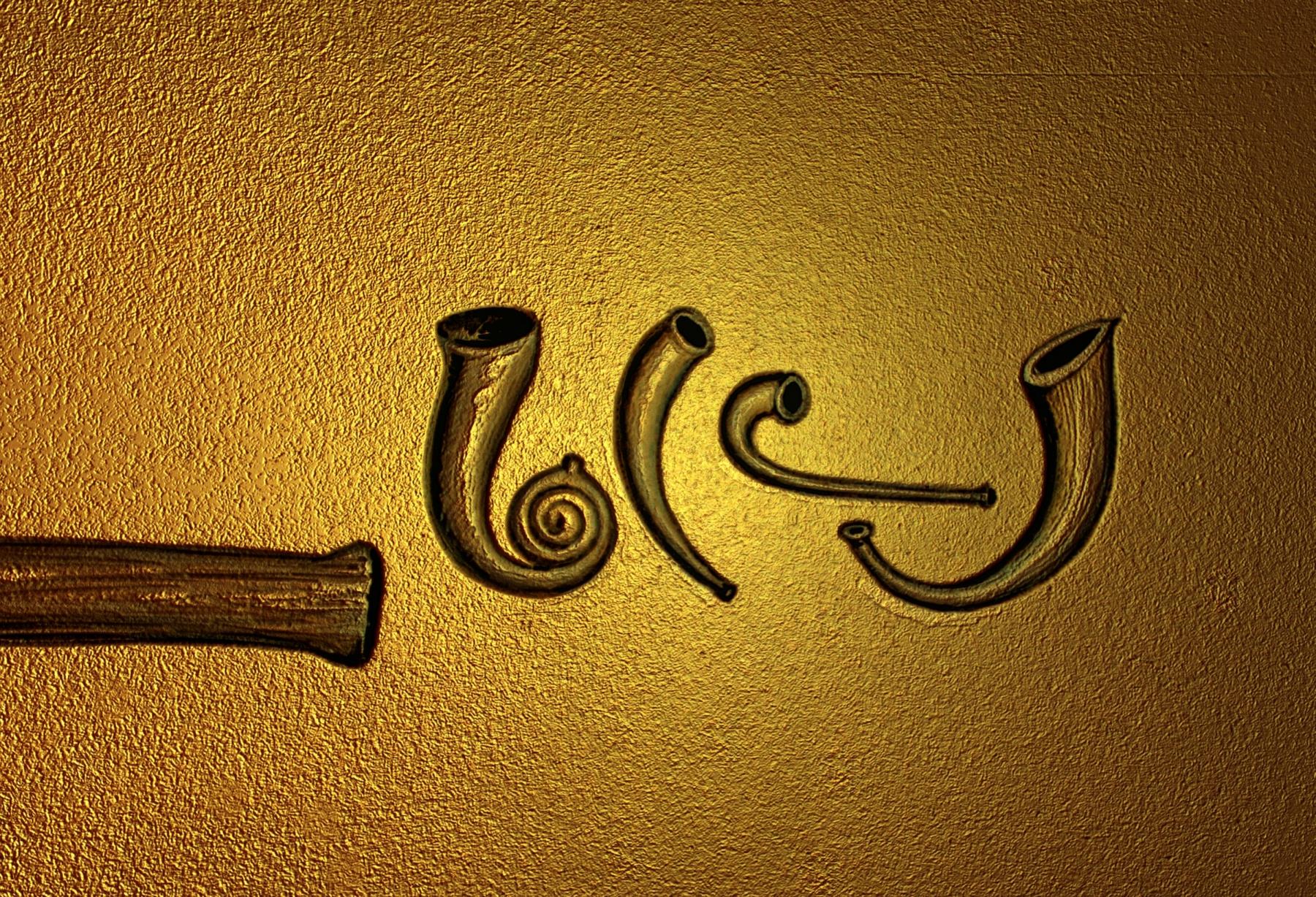 Trumpets in Bible times were in many shapes and sizes, made from animal horns or metal.