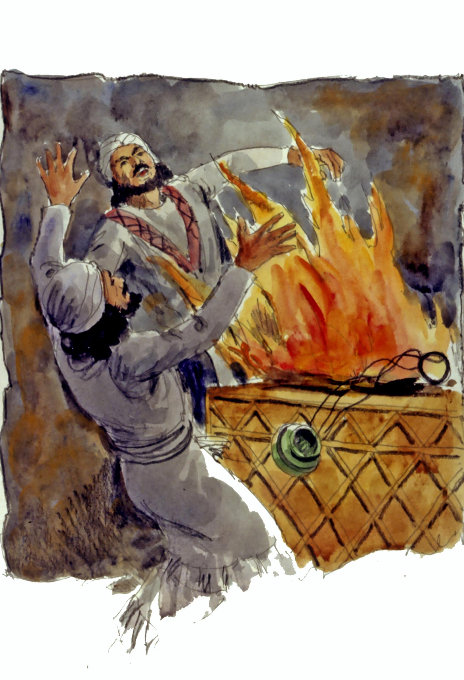 Nadab and Abihu ![]() Nadab and Abihu, sons of the high priest Aaron, sacrificed wrongfully, and it would seem intentionally. For that, they died. This picture shows them as they were struck dead for their sin (Leviticus 10). nadab; abihu; sons of aaron; high priest; Leviticus 10; wrongfully; sin; sinful; sacrifice; sacrificed; sacrificing; sacrificial; sacrificially; offer; offered; offering; sinfully; intentionally; execution; death; dying; dead; sins; sacrifices; offers; offerings; executions; deaths Bible Hub |