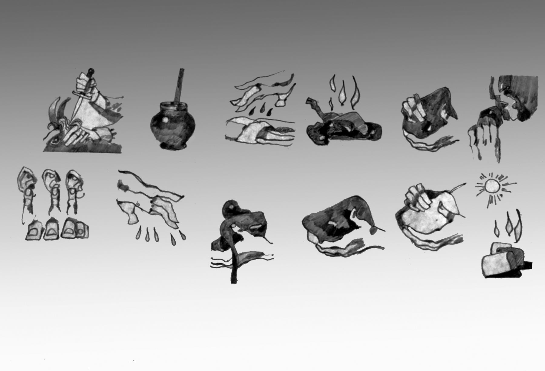 Rites of Sanctification: Top row ![]() Rites of Sanctification: Top row, from left to right: killing the animal for the sacrifice, pot with blood into which hyssop was dipped to sprinkle blood on the altar, sprinkling blood on garments, burning the sacrifice on the altar, wave or heave offering, and ram's meat to be boiled at the door of the Tabernacle. Bottom row, from left to right: smearing blood on Aaron's ear, sprinkling blood on altar, Moses puts meat and bread and wafer into Aaron's hands to be waved, giving priests their portion of the meat, and burning parts of the meat. rites of sanctification; rite; sanctification; animal for sacrifice; hyssop; sprinkle blood; altar; sacrifice on altar; wave offering; heave offering; ram's meat; aaron's ear; blood on altar; burning meat; rites; altars Bible Hub |