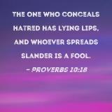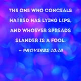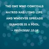The one who conceals hatred has lying lips, and whoever spreads slander is a fool.