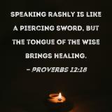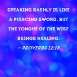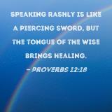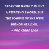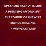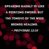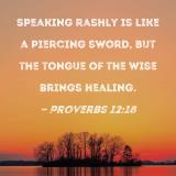 Speaking rashly is like a piercing sword, but the tongue of the wise brings healing.